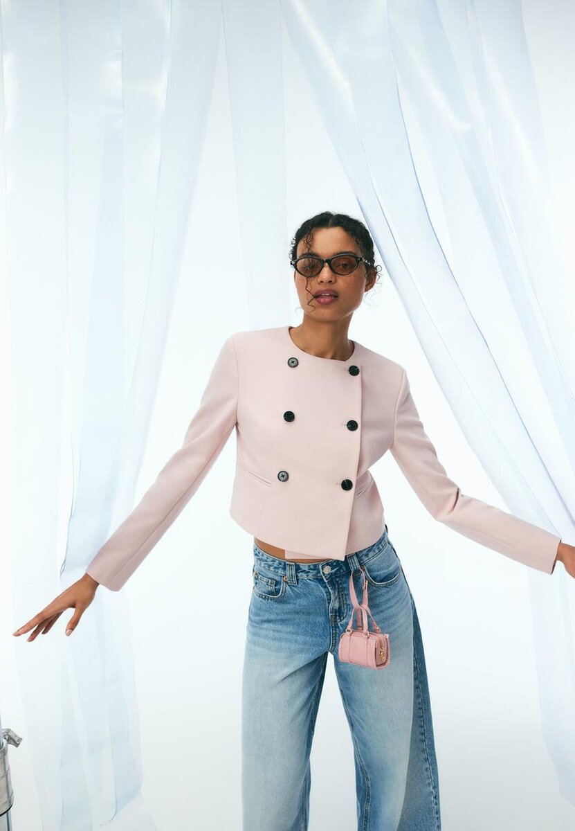 Kort blazer med rund hals fra Stradivarius for kun 29,94 $ Tilgjengelig i en begrenset periode. Mocacos Nuevo for kvinner Alltid på moten, kom inn og oppdag det nå!