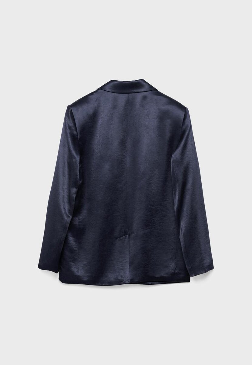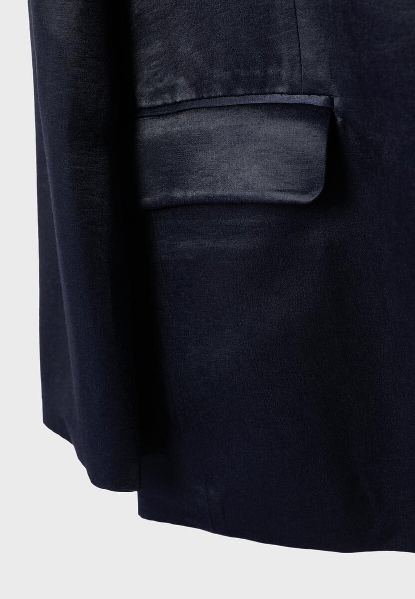 Satinblazer med reverskrage og lange ermer. Med lommer med klaff foran og knappelukking foran. Tilgjengelig i ulike farger.