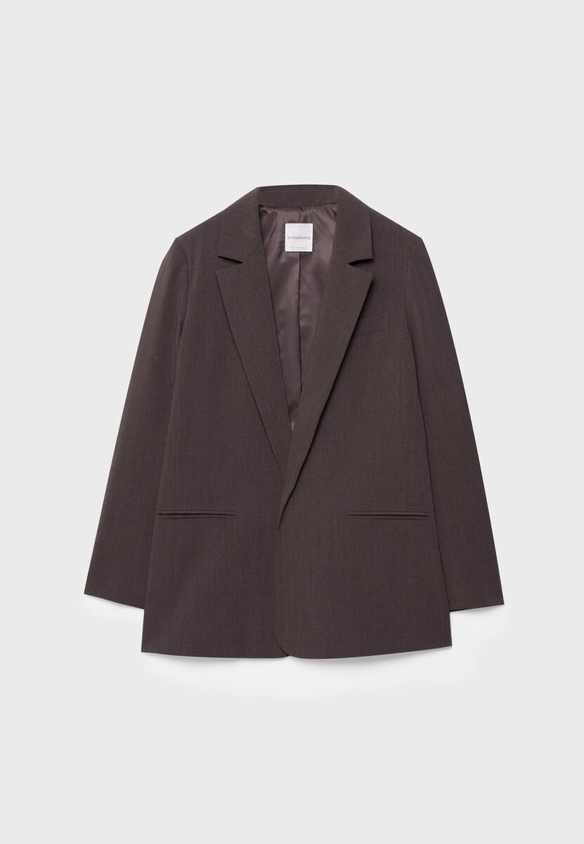 Åpen blazer med normal lengde og rett snitt. Med reverskrage, lange ermer og falske lommer med klaff foran. Tilgjengelig i en rekke farger.