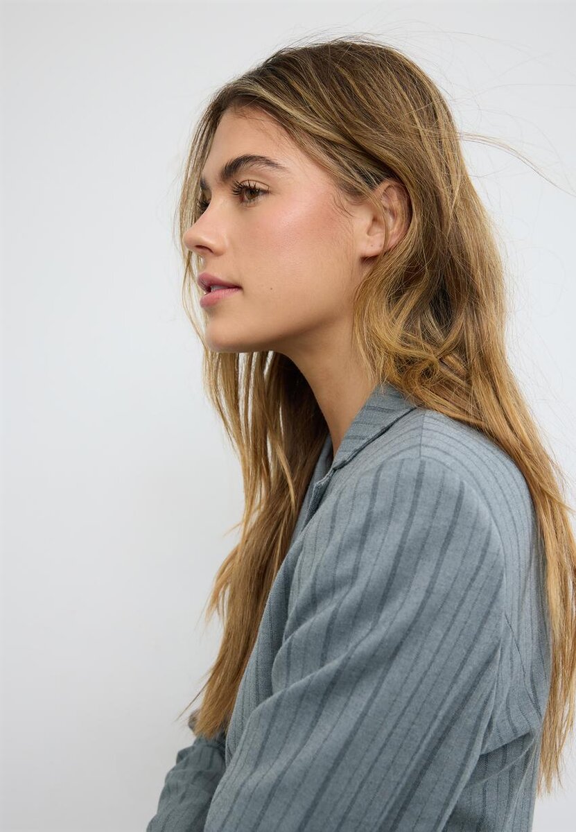 Kort blazer laget av et elastisk viskoseblandingsstoff for større komfort og bevegelighet. Med reverskrage og lange flared ermer. Lommer med klaff foran. Knappestenging foran.