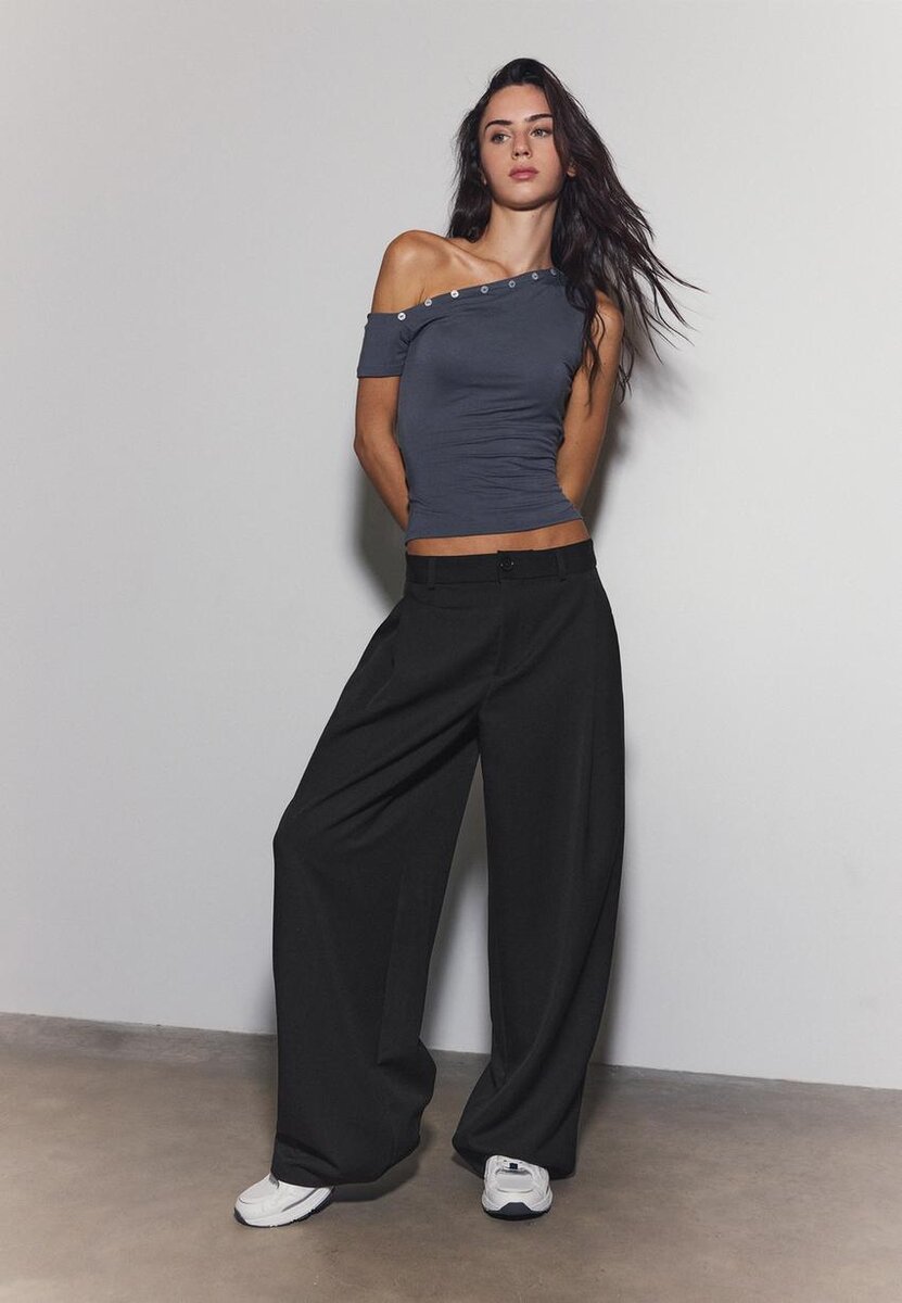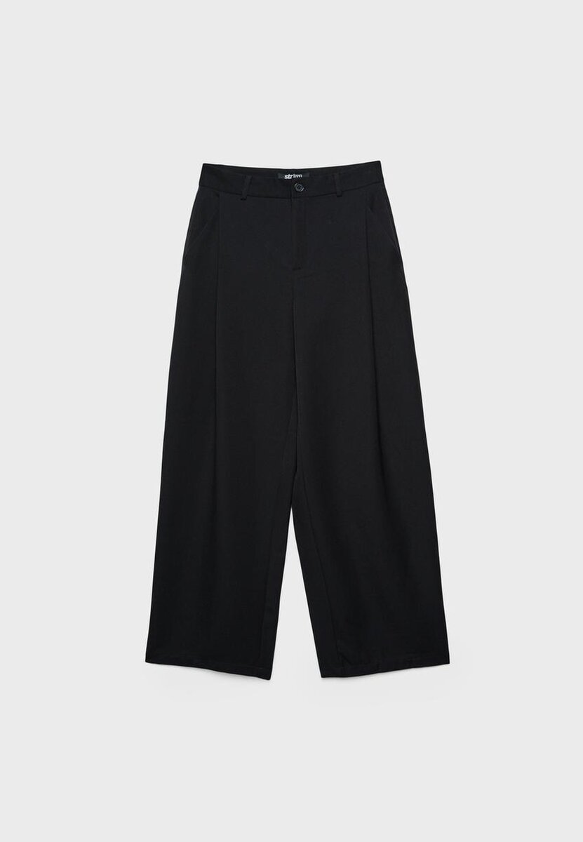 Barrel Smart-bukser med midjehøyde og beltestropper. Sidelommer og falske baklommer. Med innsnitt foran. Bredt og rett ben. Glidelås og knappelukking foran. Tilgjengelig i flere farger.