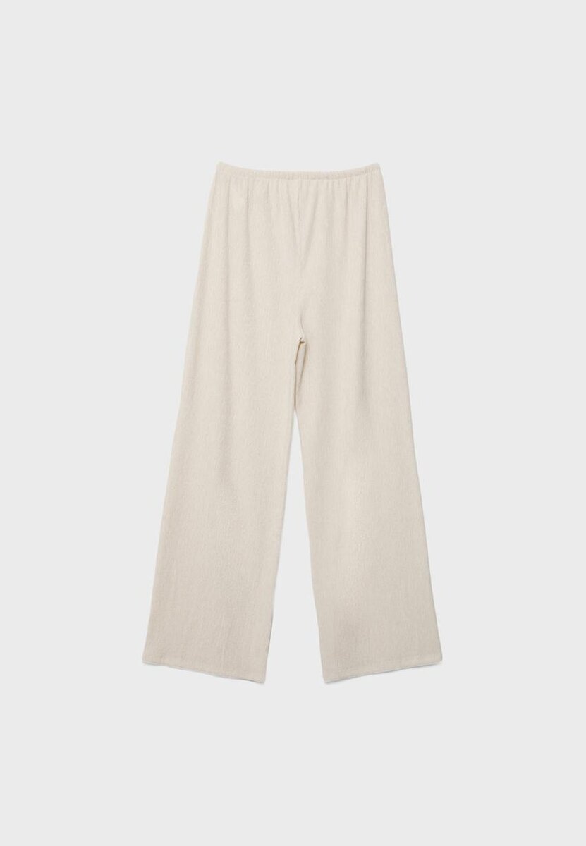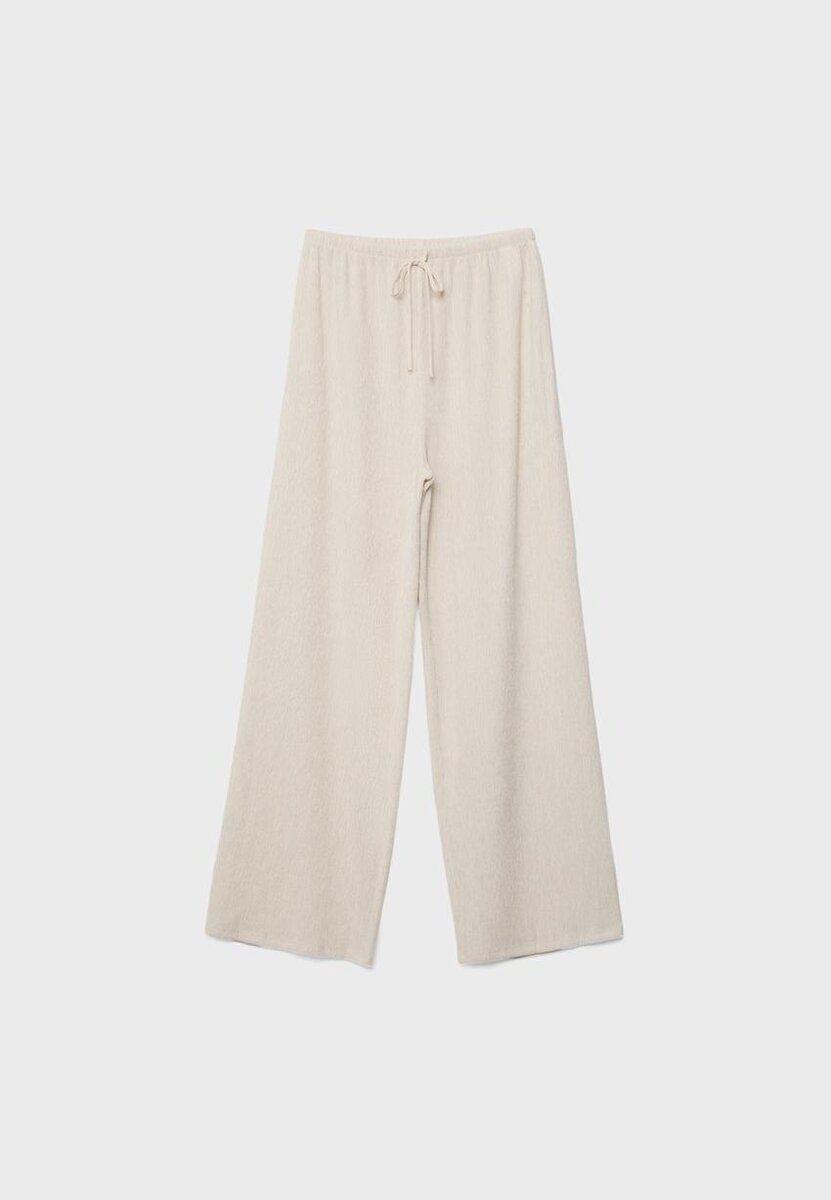 Bukser med rett ben i stoff med krølleteffekt, med 19 % viskose. Med elastisk linning og justerbare snøringer. Rett, Wide Leg-modell. Tilgjengelig i ulike farger.