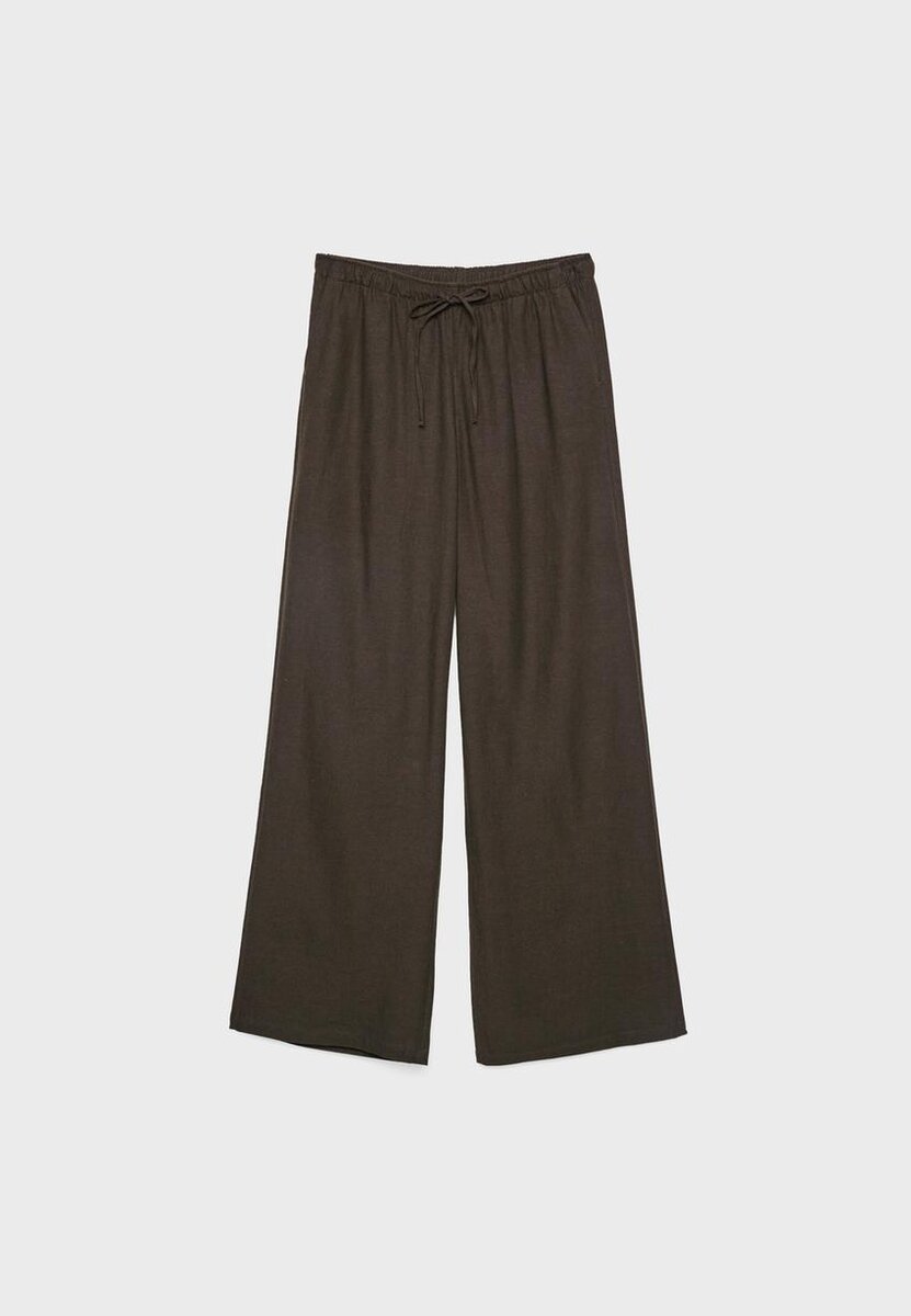 Bukser med snøring og lin-effekt hos Stradivarius for kun 35,9 $ Tilgjengelig i en begrenset periode. Bukser for kvinner som alltid er på moten, kom inn og sjekk ut nå!