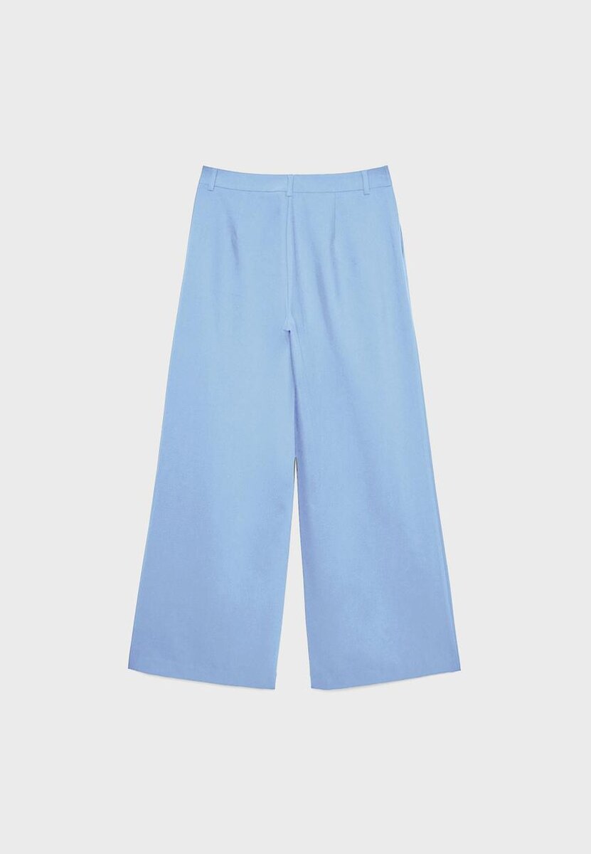 Langbukser med midje i midten og beltestropper. Med sidelommer, innsnittsdetaljer foran, rett, Wide Leg og krysset glidelås foran, knapp på innsiden og knappelukking foran. Tilgjengelig i flere farger.