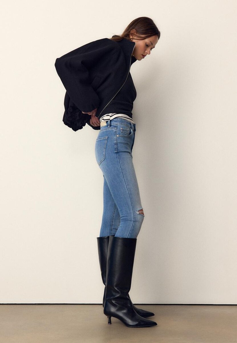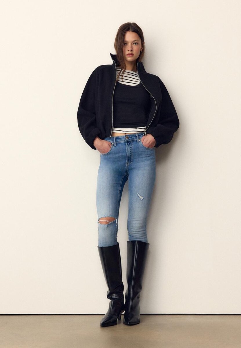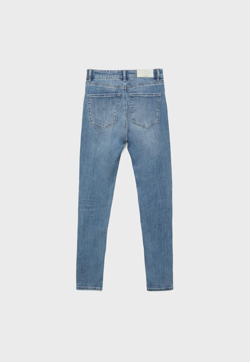 Skinny Fit jeans med middels høy midje og fem lommer. Gylf med glidelås og metallknapp øverst.