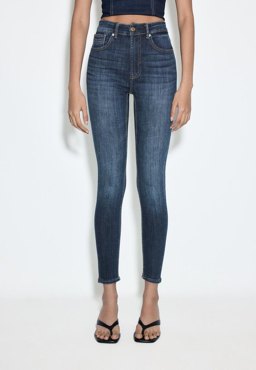Skinny Fit jeans med middels høy midje og fem lommer. Glidelås og metallknapp øverst.