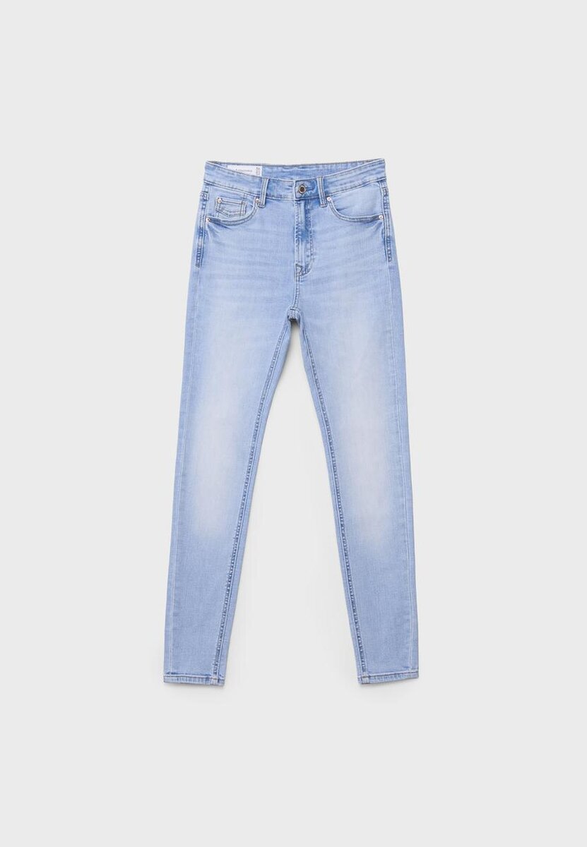 Skinny Fit jeans med middels høy midje og fem lommer. Glidelås og metallknapp øverst.