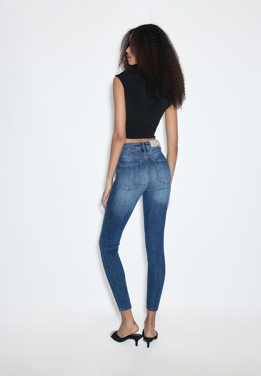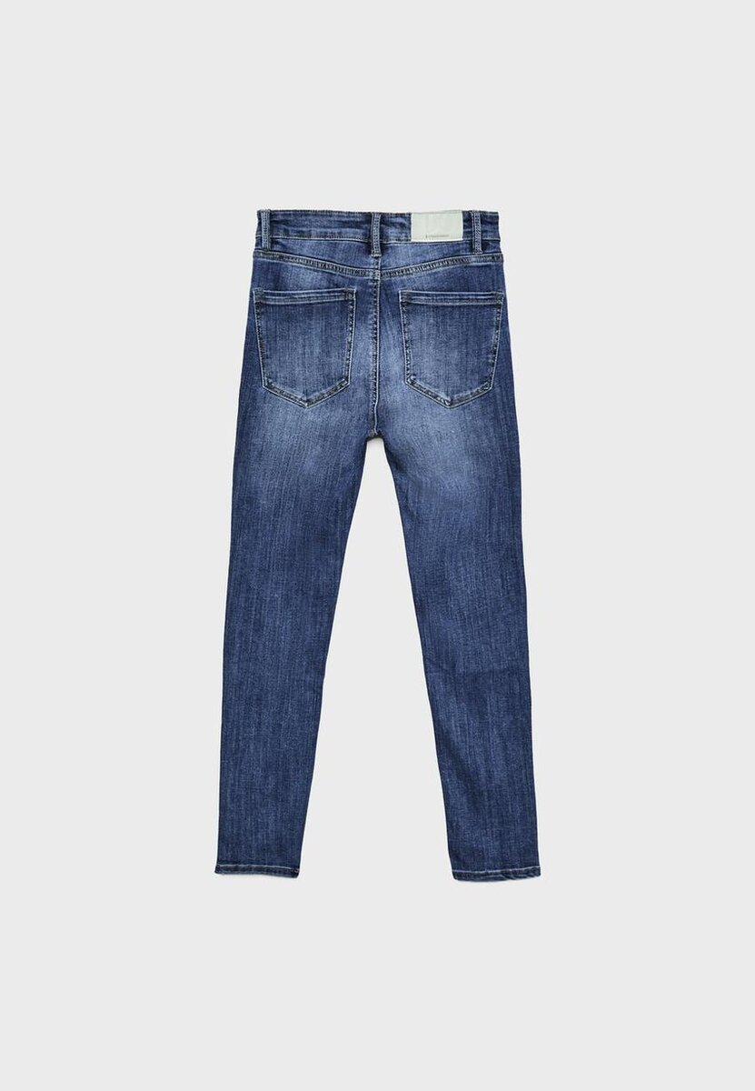 Skinny Fit jeans med middels høy midje og fem lommer. Glidelås og metallknapp øverst.