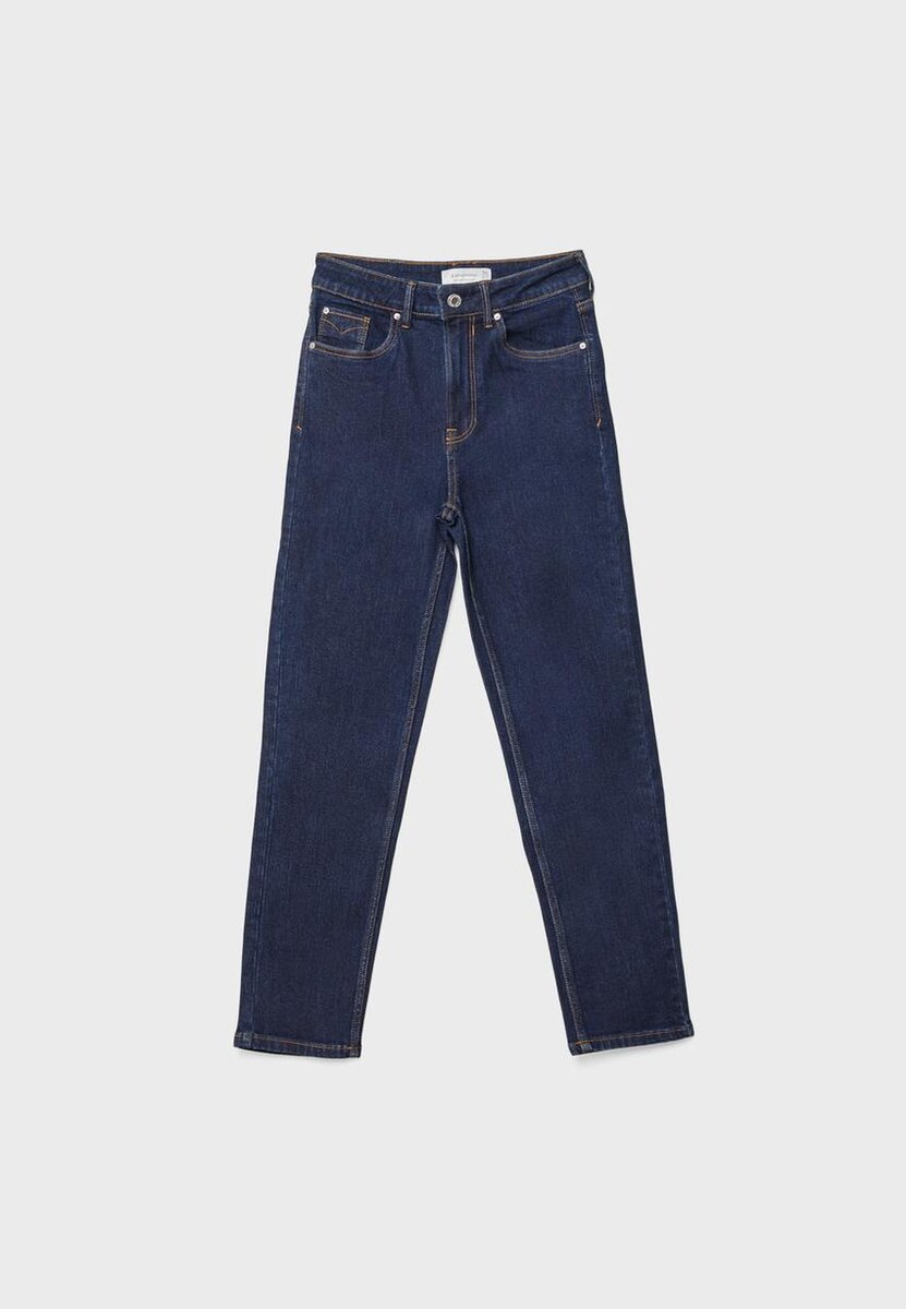 Slim Fit Mom Jeans med superhøy midje og fem lommer. Glidelås og metallknapp øverst.