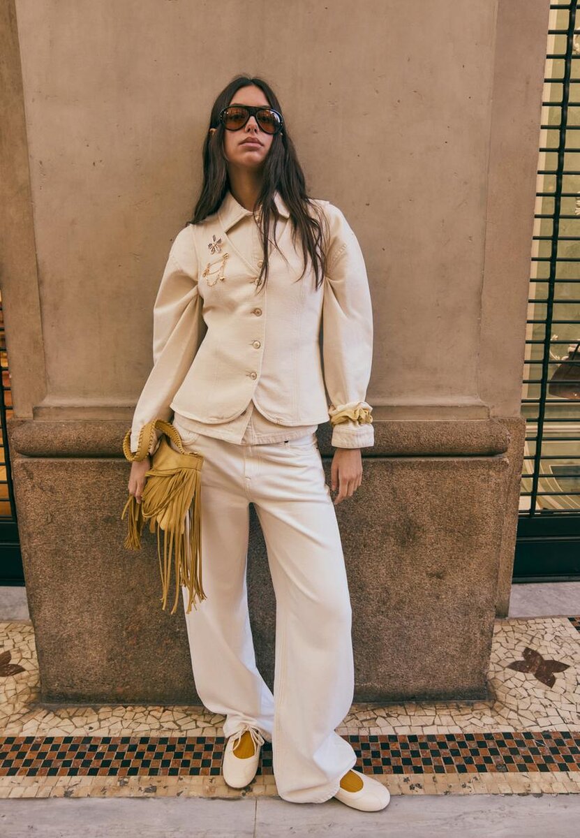 D91 Twill-jeans med lav midje og Wide Leg-design