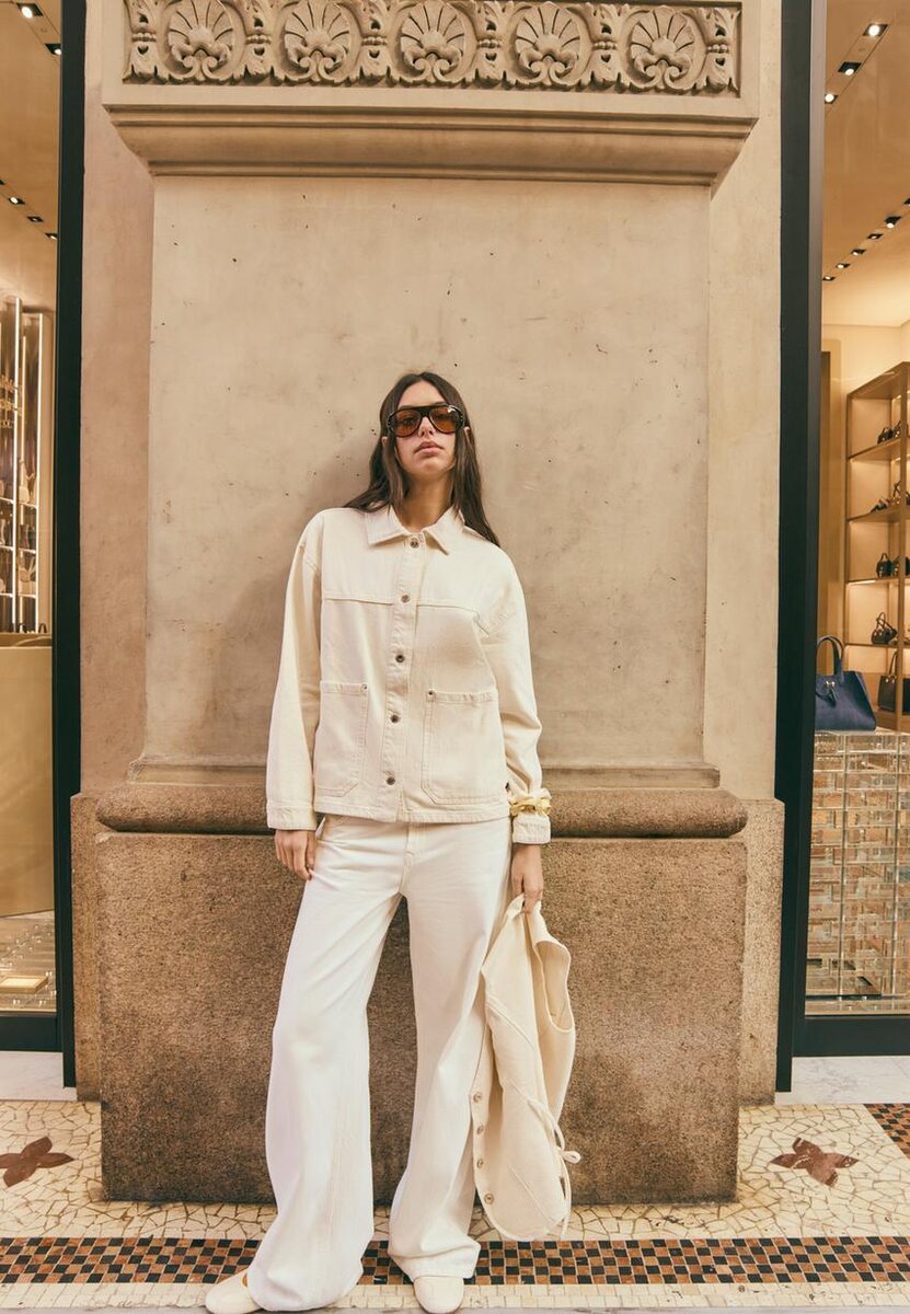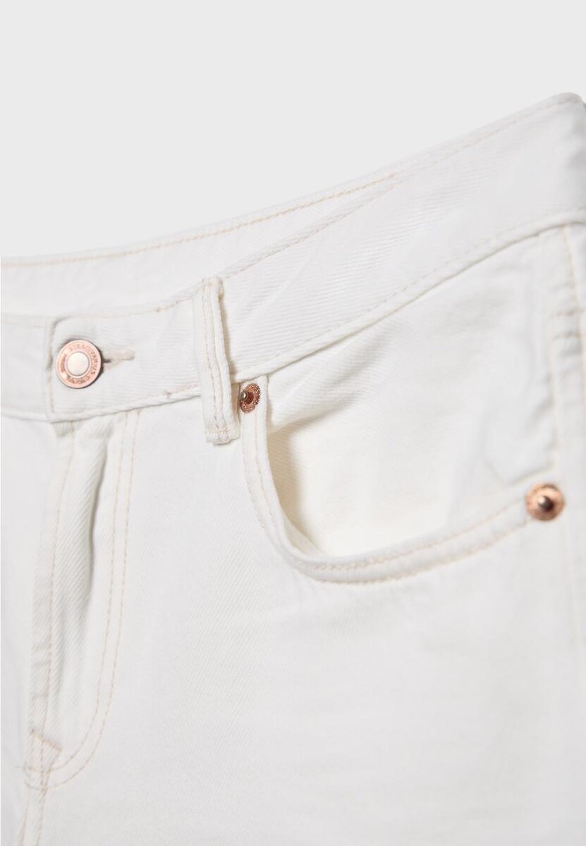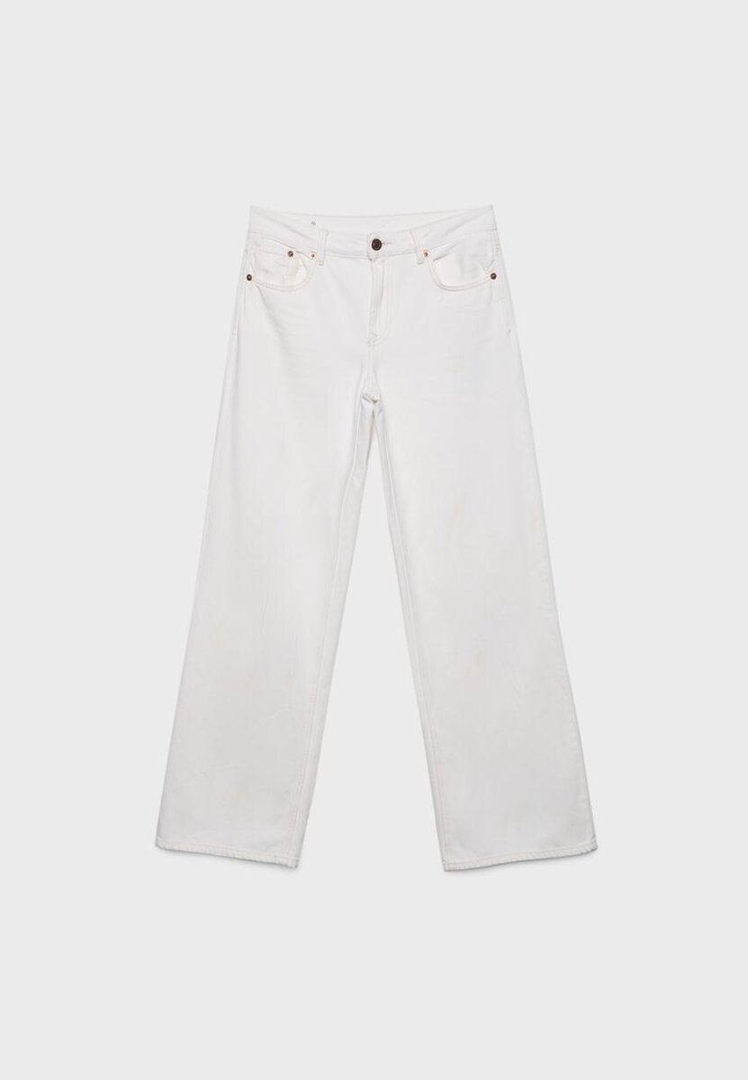 Jeans med lav midje og Wide Leg-design, med beltestropper. Med lommer foran og påsydde lommer bak. Rett ben. Gylf med glidelås foran og metallknapp øverst.