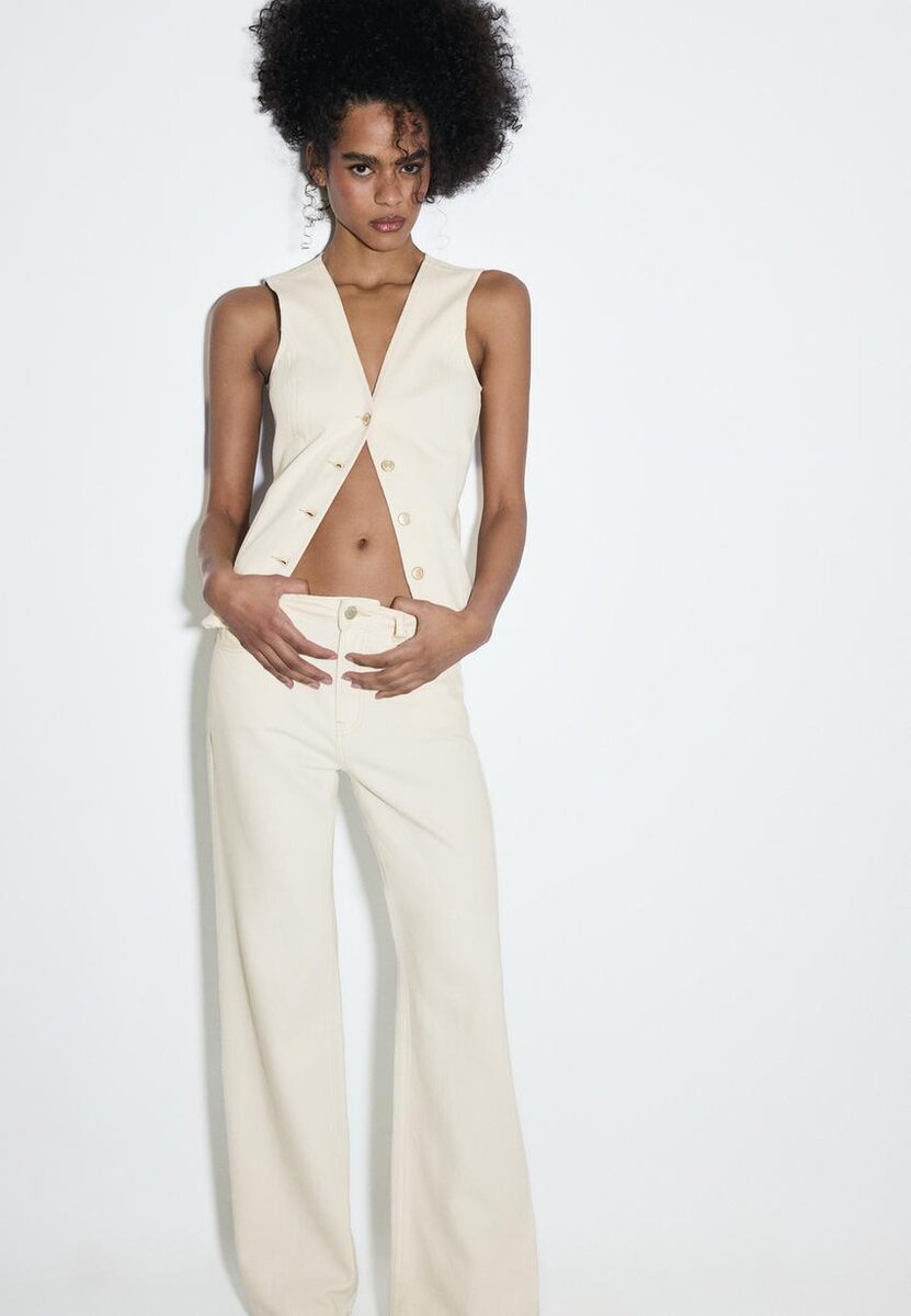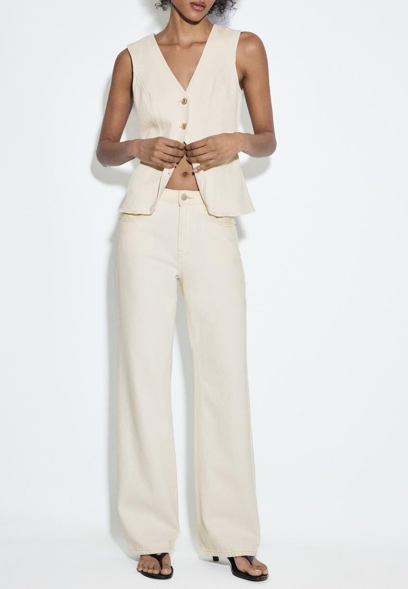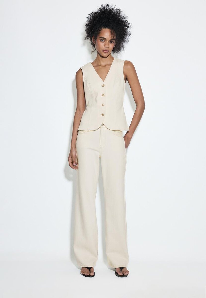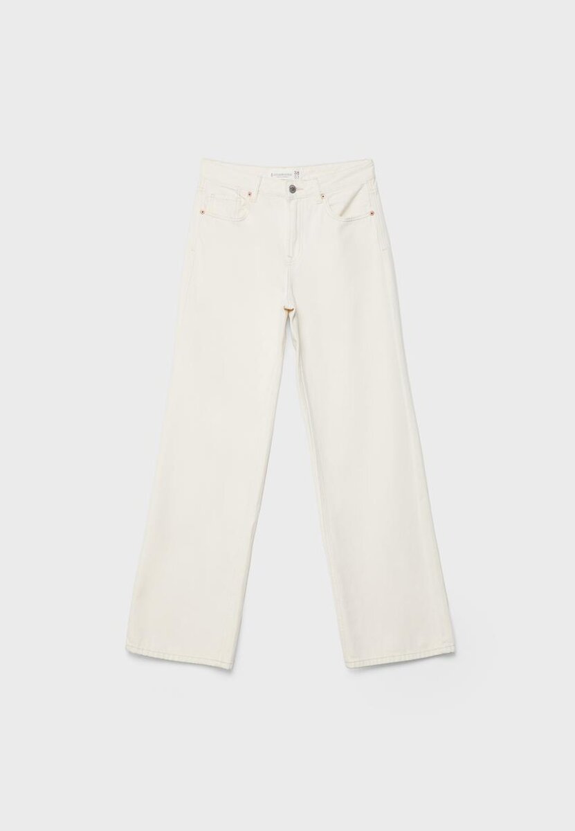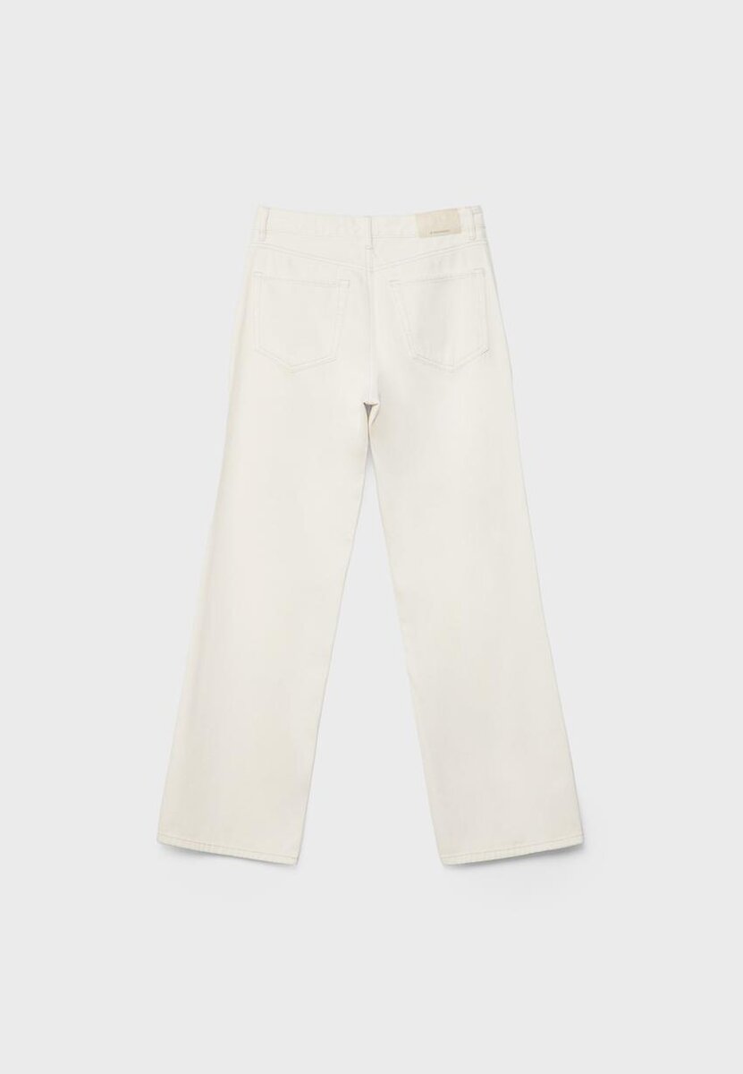 Jeans med høy midje, rett snitt og vid benbredd, med lommer foran. Påsydde lommer bak. Linning med beltestropper. Rett, Wide Leg. Glidelås foran og metallknapper. Tilgjengelig i flere farger.