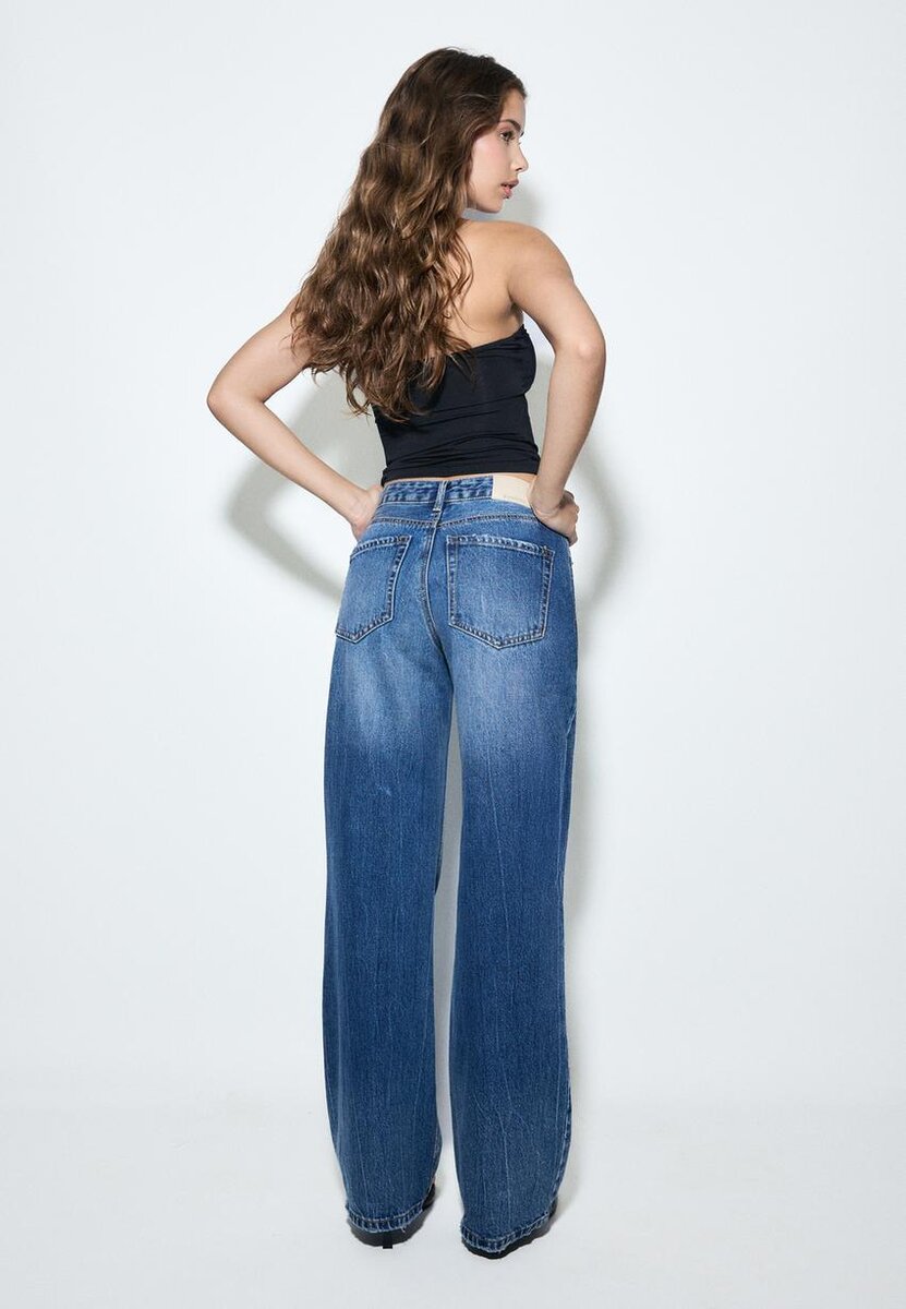 Jeans med høy midje, rett og Wide Leg passform og fem lommer. Glidelås og metallknapp øverst.