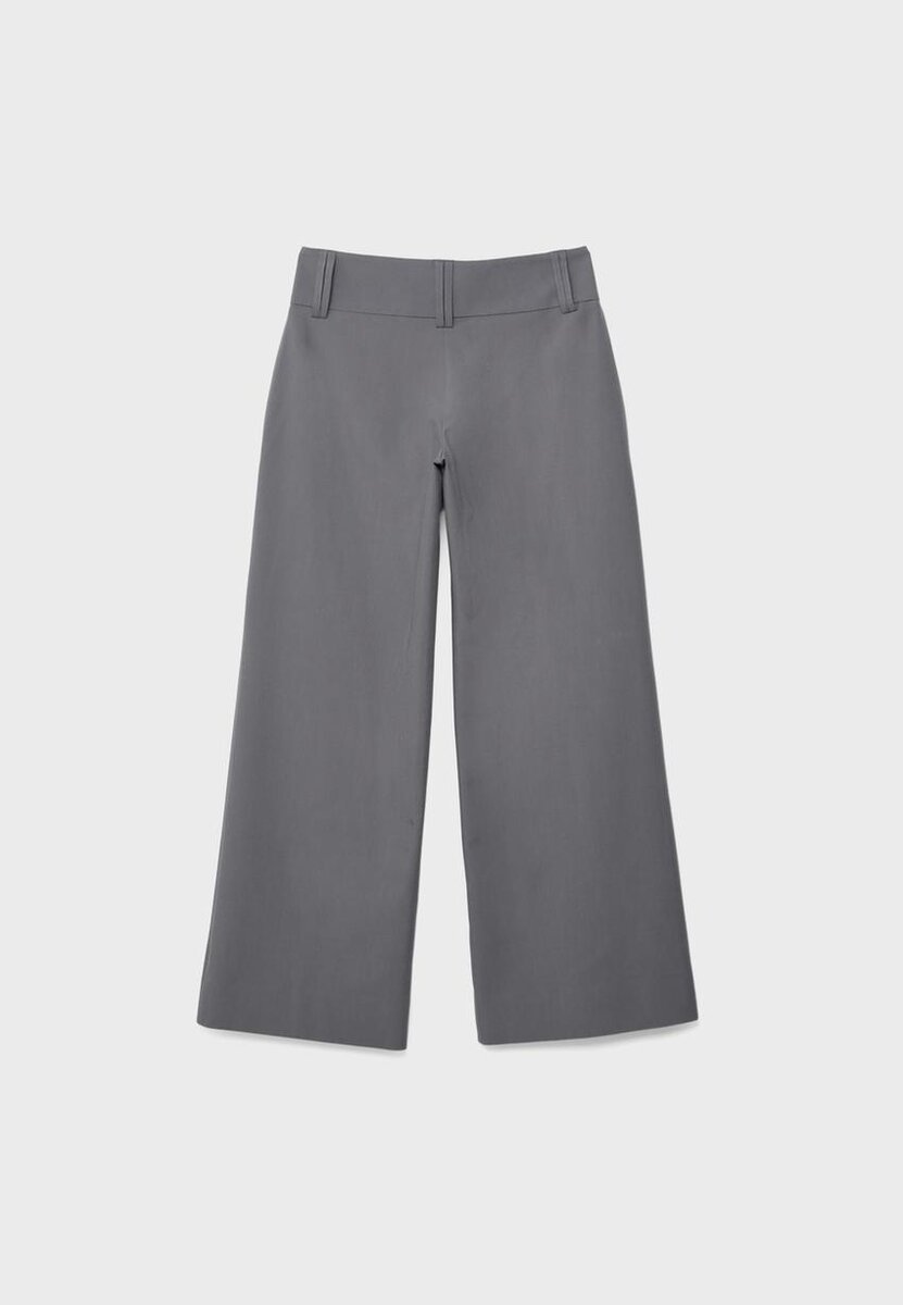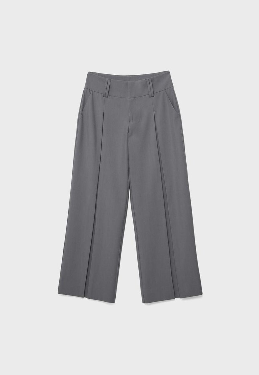 Elegante bukser med bred linning og beltestropper. Med rette, vide ben og sidelommer. Innstikk på forsiden.