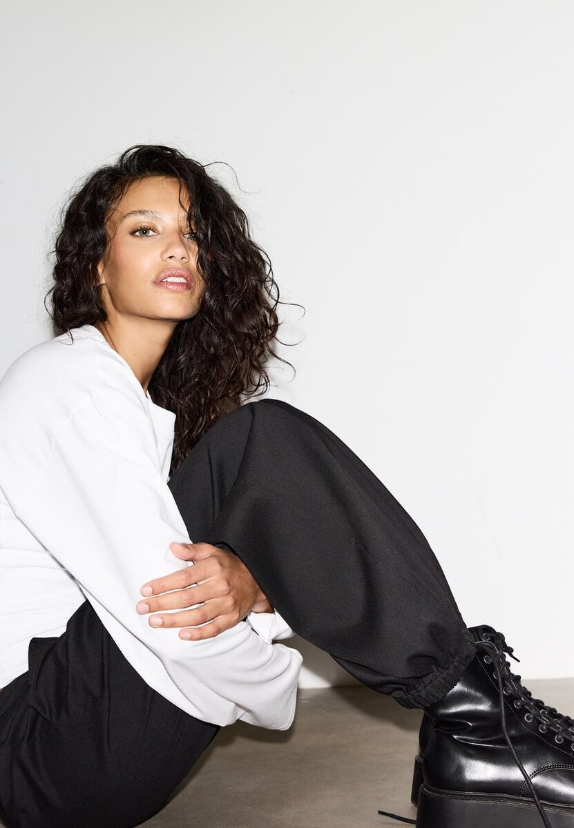 Joggebukser med Wide Leg og elastiske mansjetter. Med linning med beltestropper og sidelommer. Glidelås foran og metallhake. Tilgjengelig i flere farger.