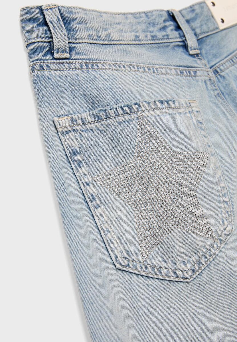Jeans med lav midje og vide Wide Leg-ben med stjernedetalj