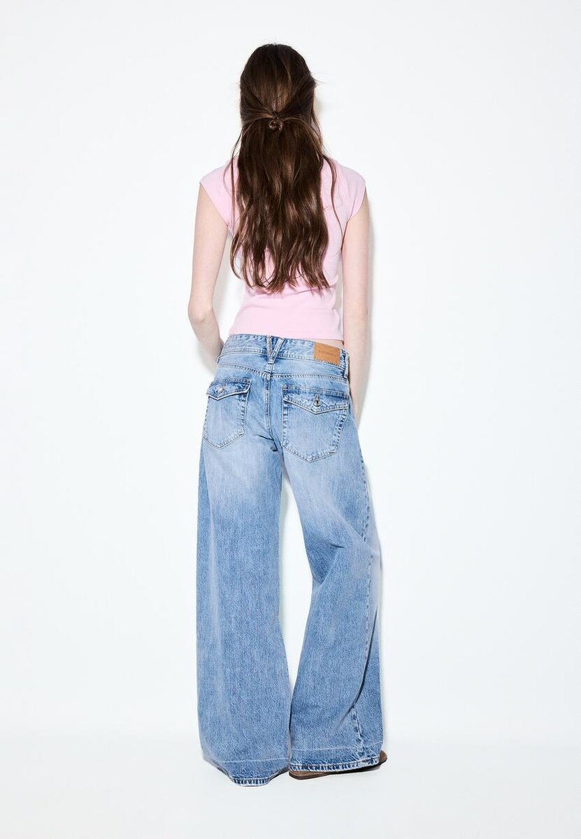 Jeans med lav midje og Wide Leg med smykkeknapp hos Stradivarius for kun 59,9 $ Tilgjengelig i begrenset periode. Null for kvinner Alltid på moten, kom inn og sjekk ut nå!