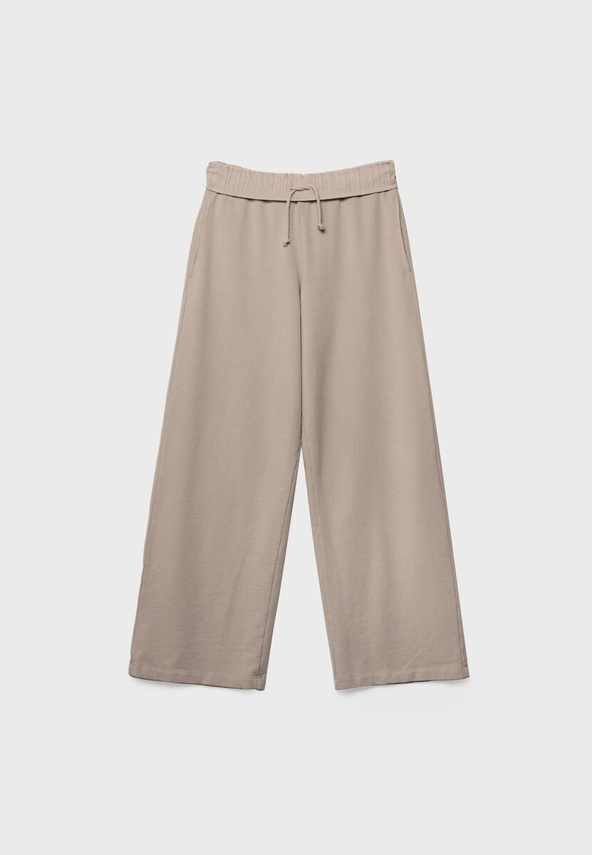 Joggebukser med vasket effekt, rett, Wide Leg-form, elastisk linning med snøring og sidelommer.