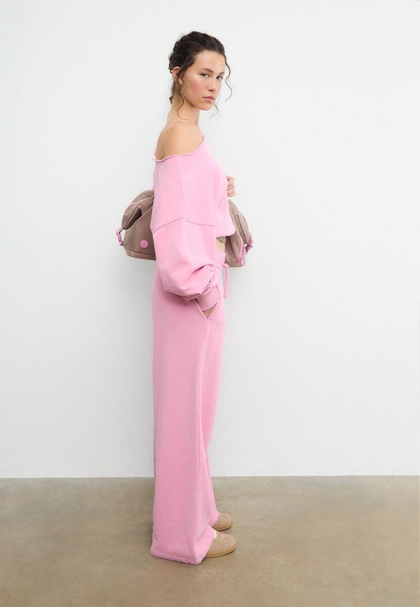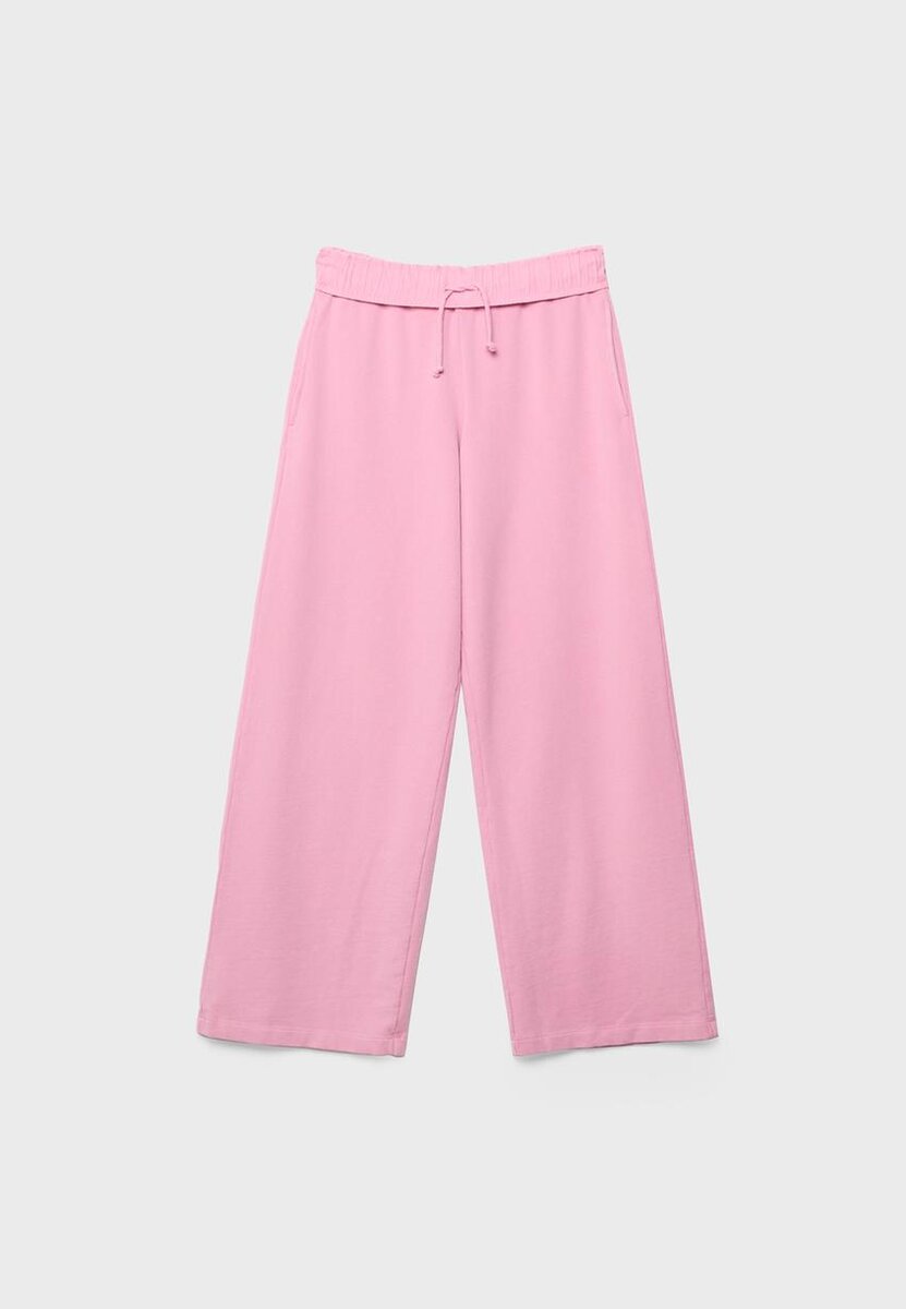 Joggebukser med vasket effekt, rett og Wide Leg. Med oppbrettet elastisk linning med snøring.
