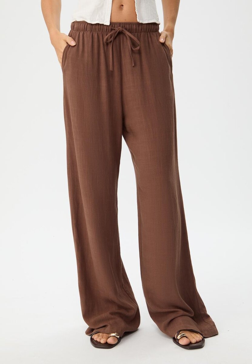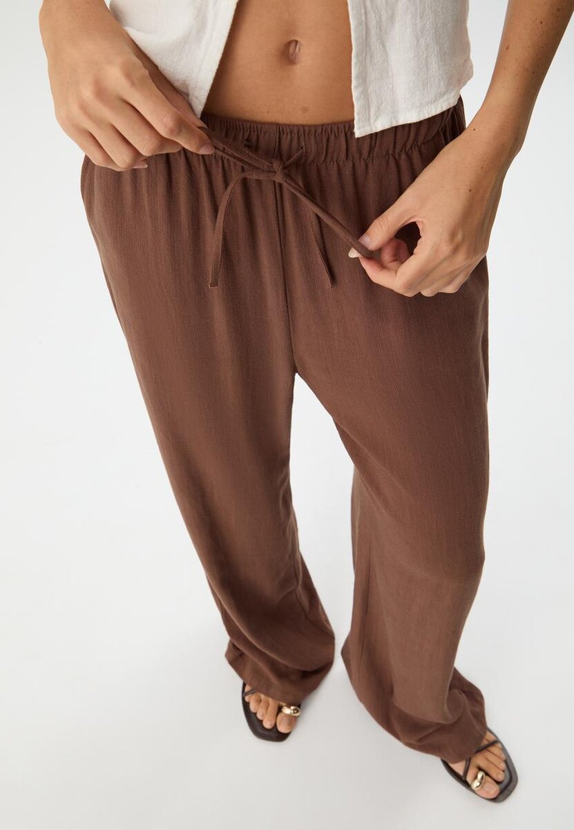 Flytende bukser med lin-effekt fra Stradivarius for bare 35,9 $ Tilgjengelig i en begrenset periode. Bukser for kvinner som alltid er på moten, kom inn og sjekk dem ut nå!