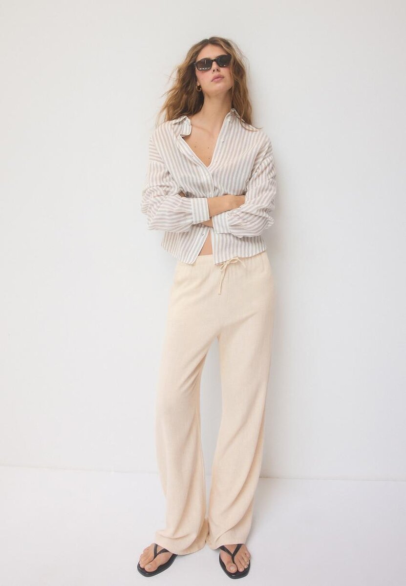 Flytende bukser med lin-effekt fra Stradivarius for bare 35,9 $ Tilgjengelig i en begrenset periode. Bukser for kvinner som alltid er på moten, kom inn og sjekk dem ut nå!