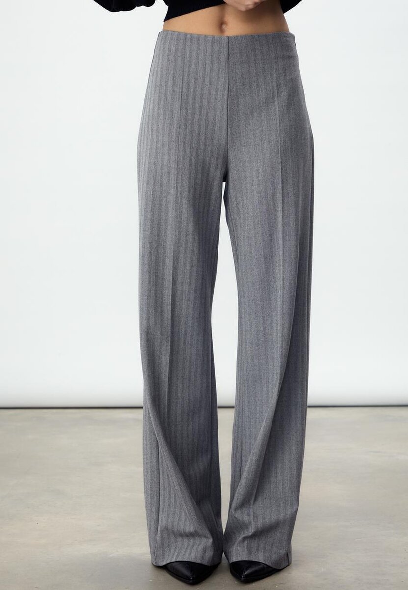 Løstsittende bukser med høy midje, rett ben og usynlig glidelås i siden. Tilgjengelig i ulike farger.