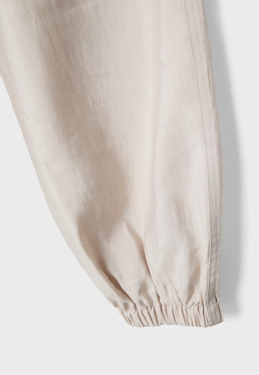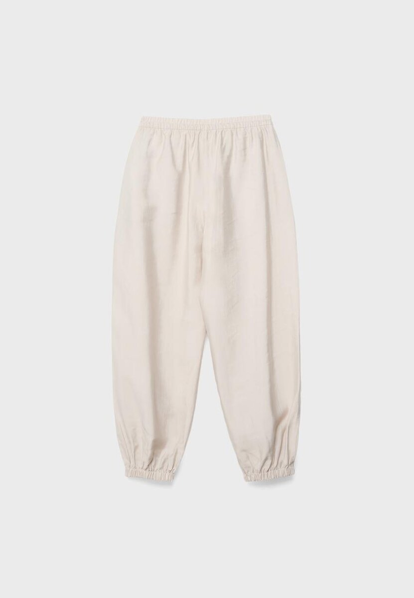 Sarouel-bukser. Elastisk linning med justerbar snøring i samme stoff. Sidelommer. Elastisk kant nederst. Tilgjengelig i flere farger.