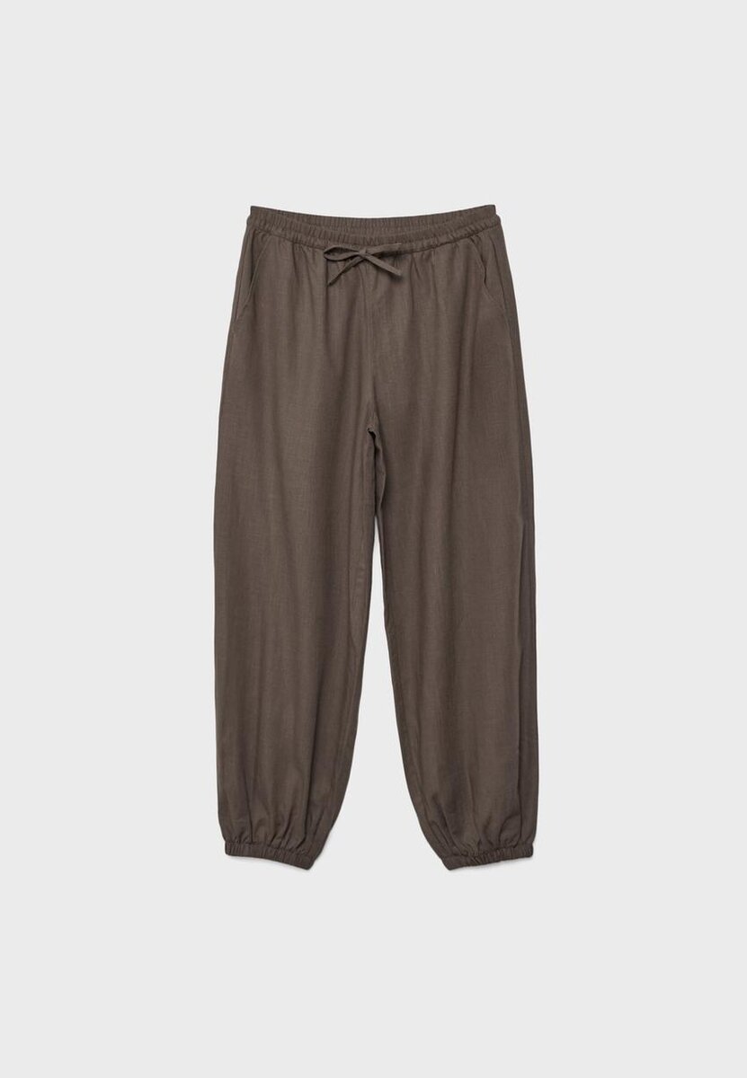 Sarouel-bukser i jogger-stil laget av 15 % lin. Med justerbar elastisk linning med snøring og sidelommer. Elastiske kanter. Tilgjengelig i ulike farger.