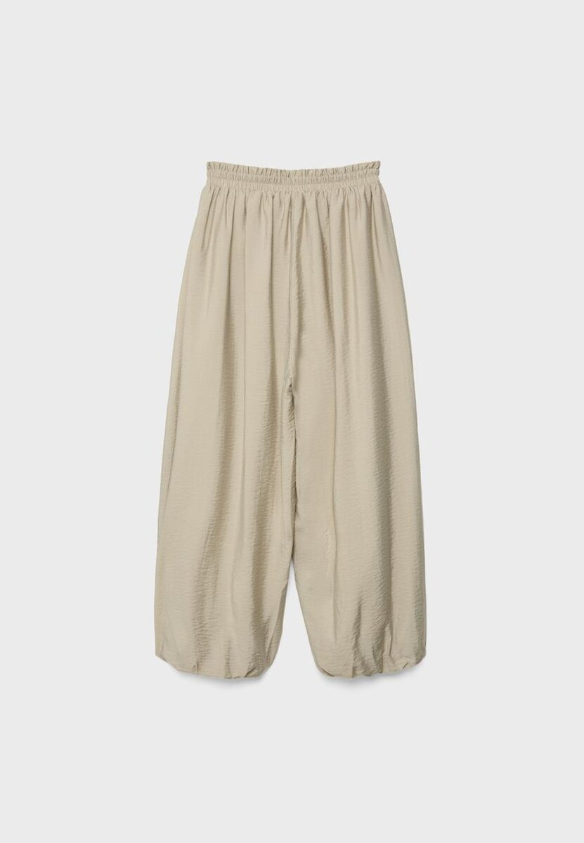 Vid sarouel-bukser med justerbar elastisk linning med matchende snøring. Elastiske mansjetter. Sidelommer. Nitte-detaljer.