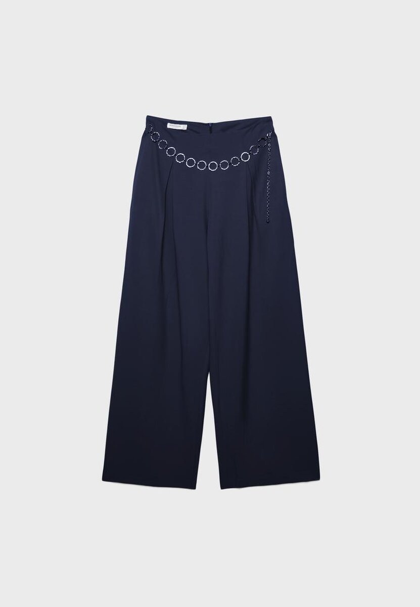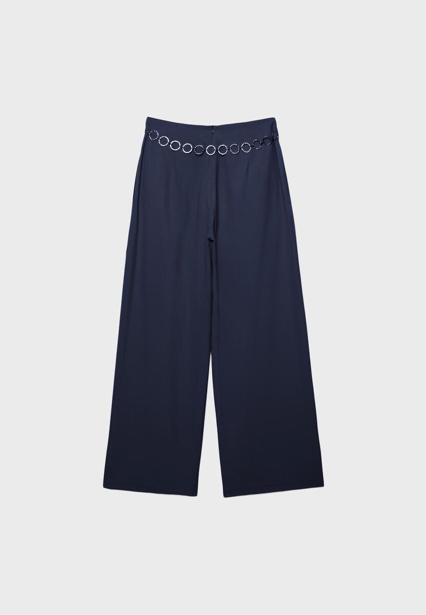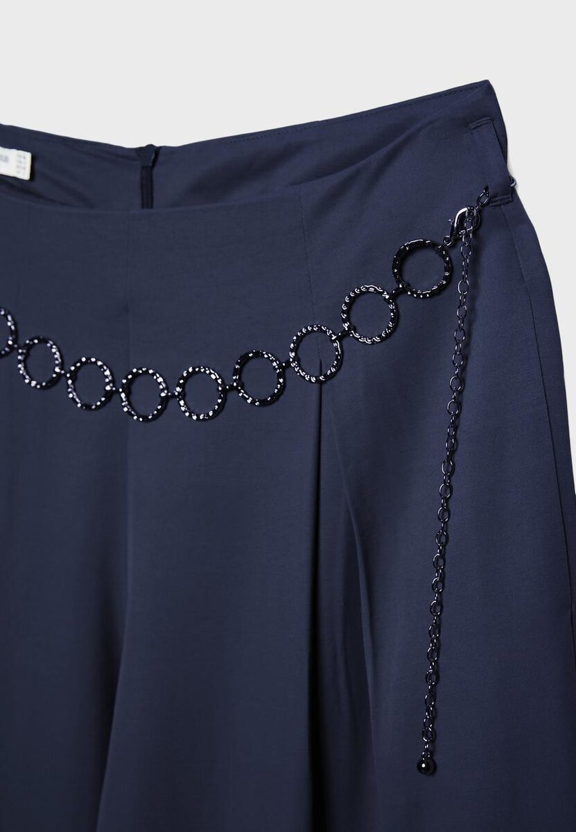 Satinbukser med innsnitt og kjede-belte