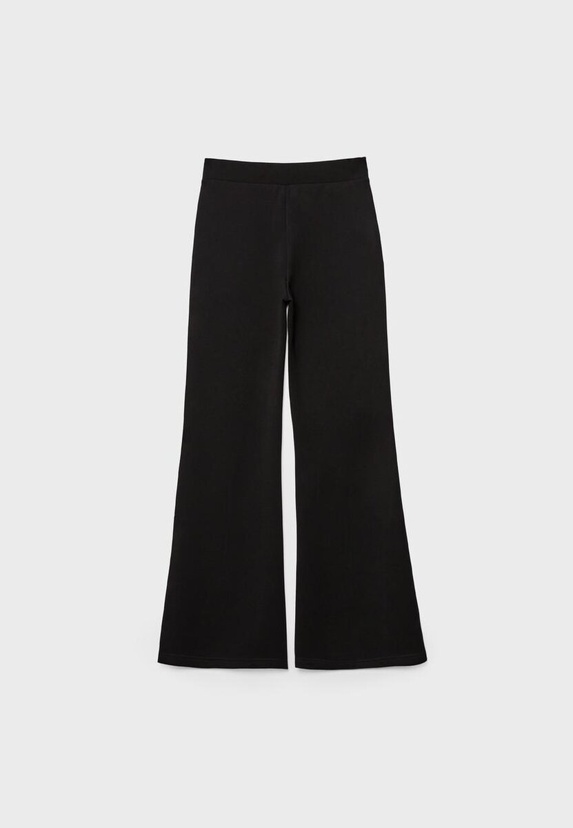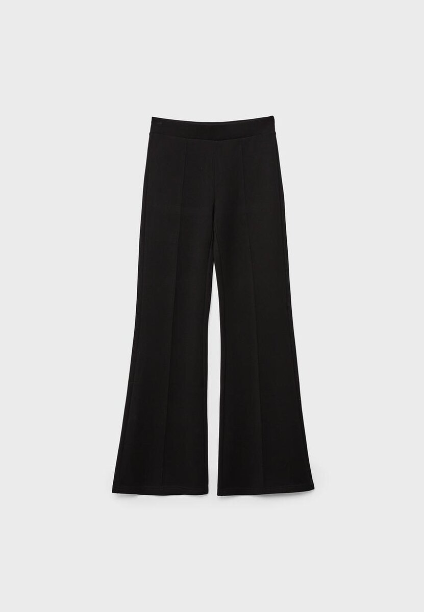Soft-Touch bukser med klokkeformet ben. Middels høy midje med elastisk linning. Flared ben. Med sømdetaljer foran.