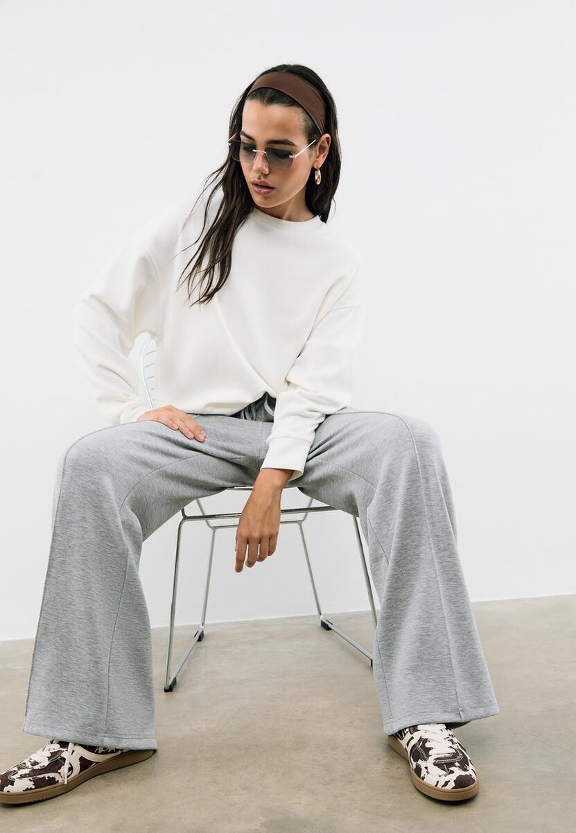 Soft-Touch Wide Leg Jogger Bukser med sømdetaljer foran