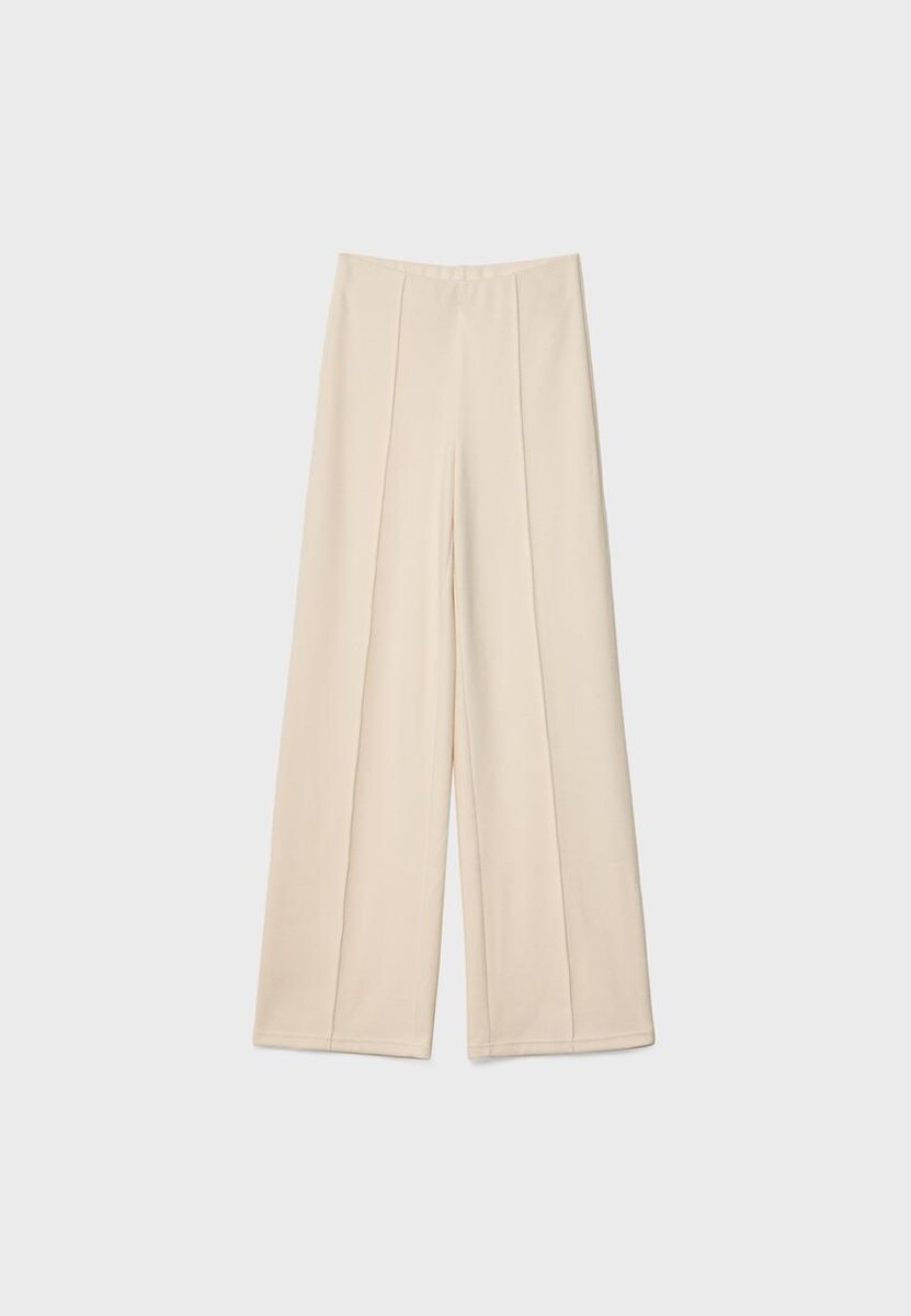 Enkle, myke Soft-Touch-strikkede bukser. Midje og elastisk linning. Sømdetaljer foran og rett ben. Tilgjengelig i flere farger.