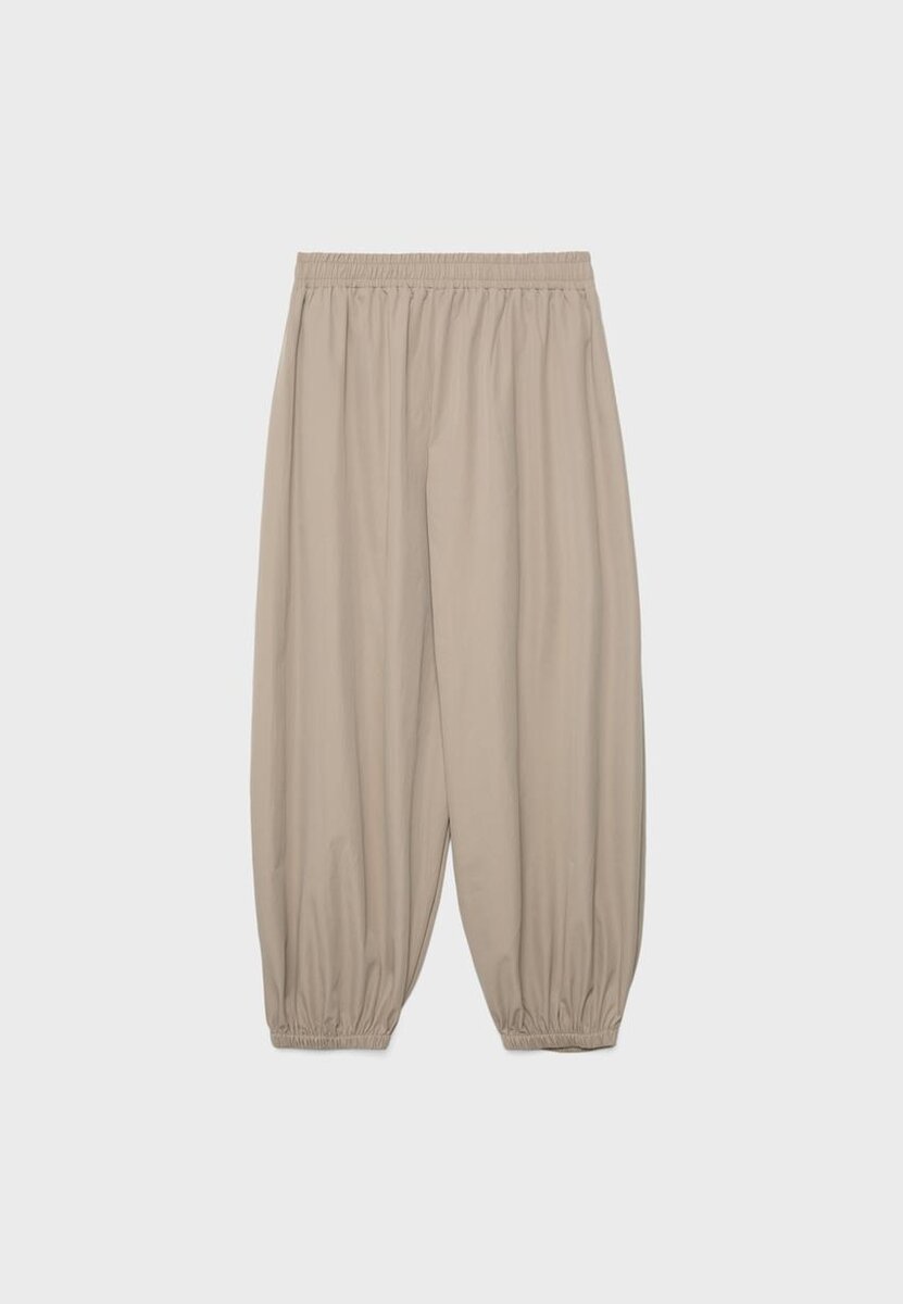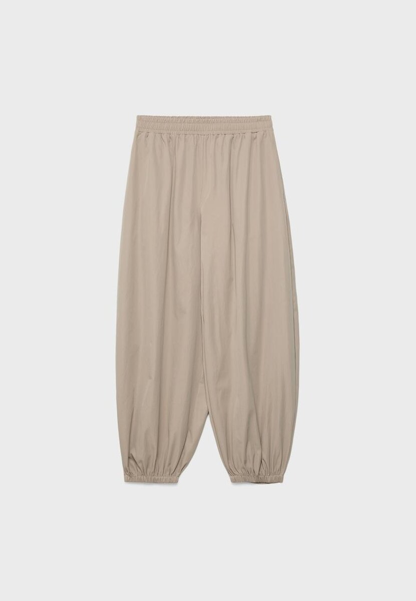Ballongbukser med middels høy midje og elastisk linning. Med pintuck-detaljer foran. Bredt ballongben med elastiske kanter. Sidelommer. Tilgjengelig i ulike farger.