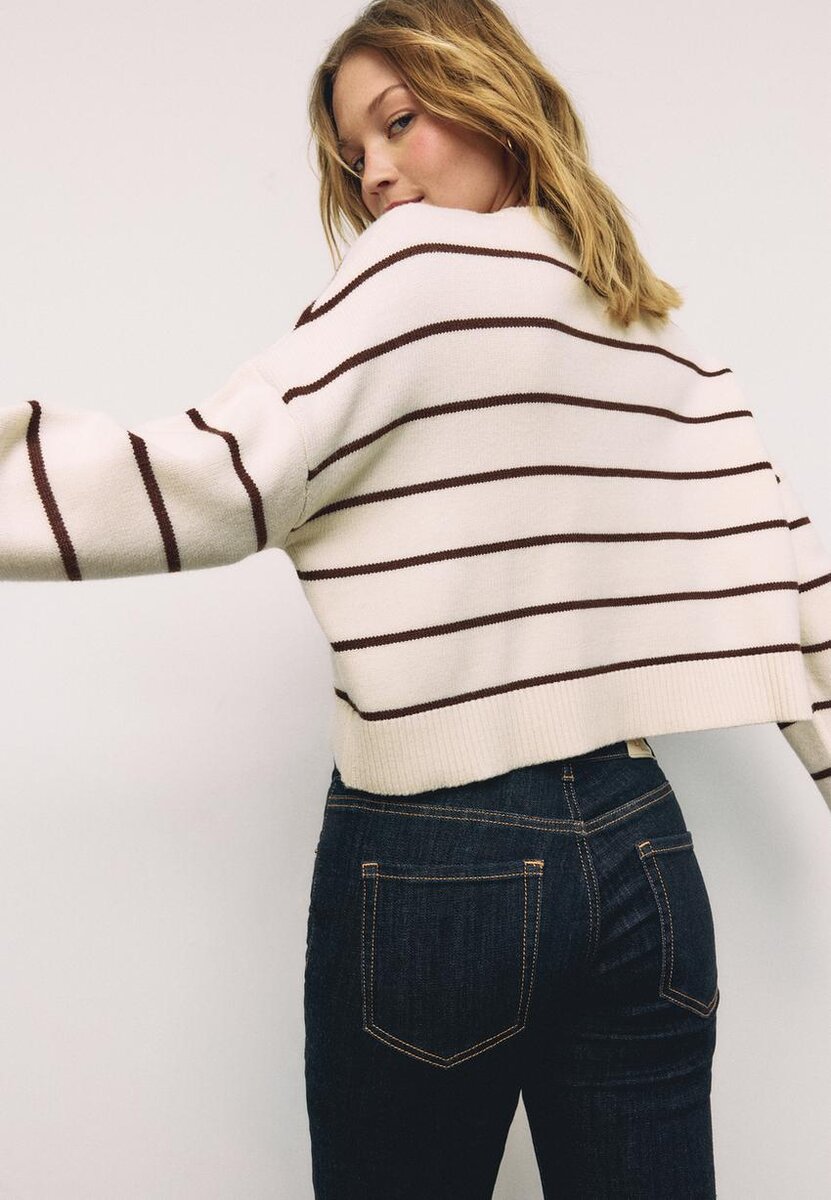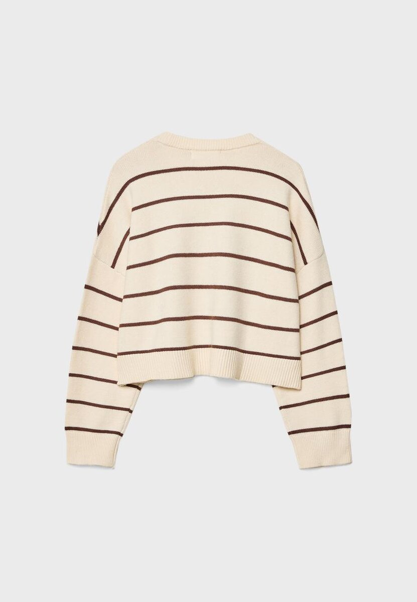Stripet kort strikket genser. Rund hals og lange ermer. Ribbestrikkede kanter. Tilgjengelig i flere farger.