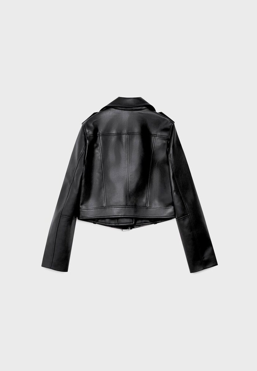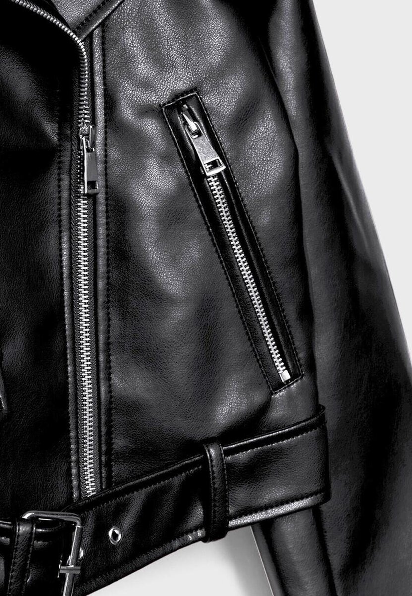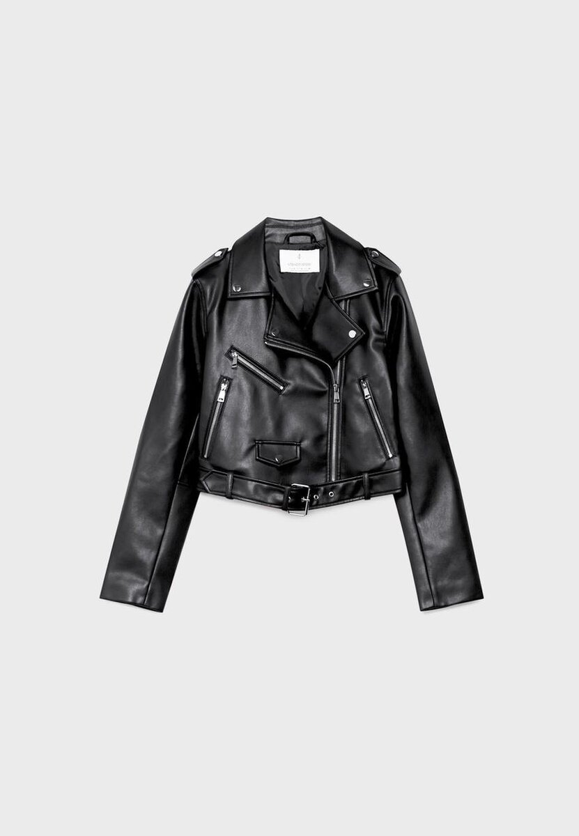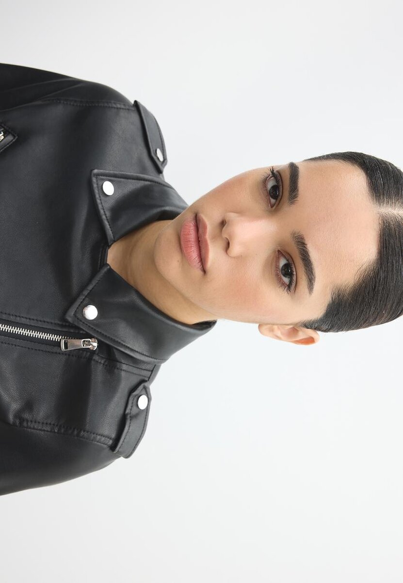Bikerjakke i imitert skinn med belte