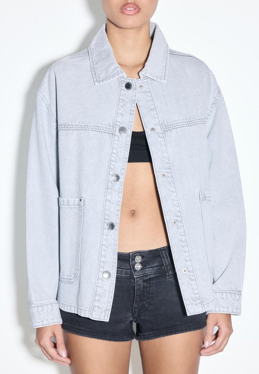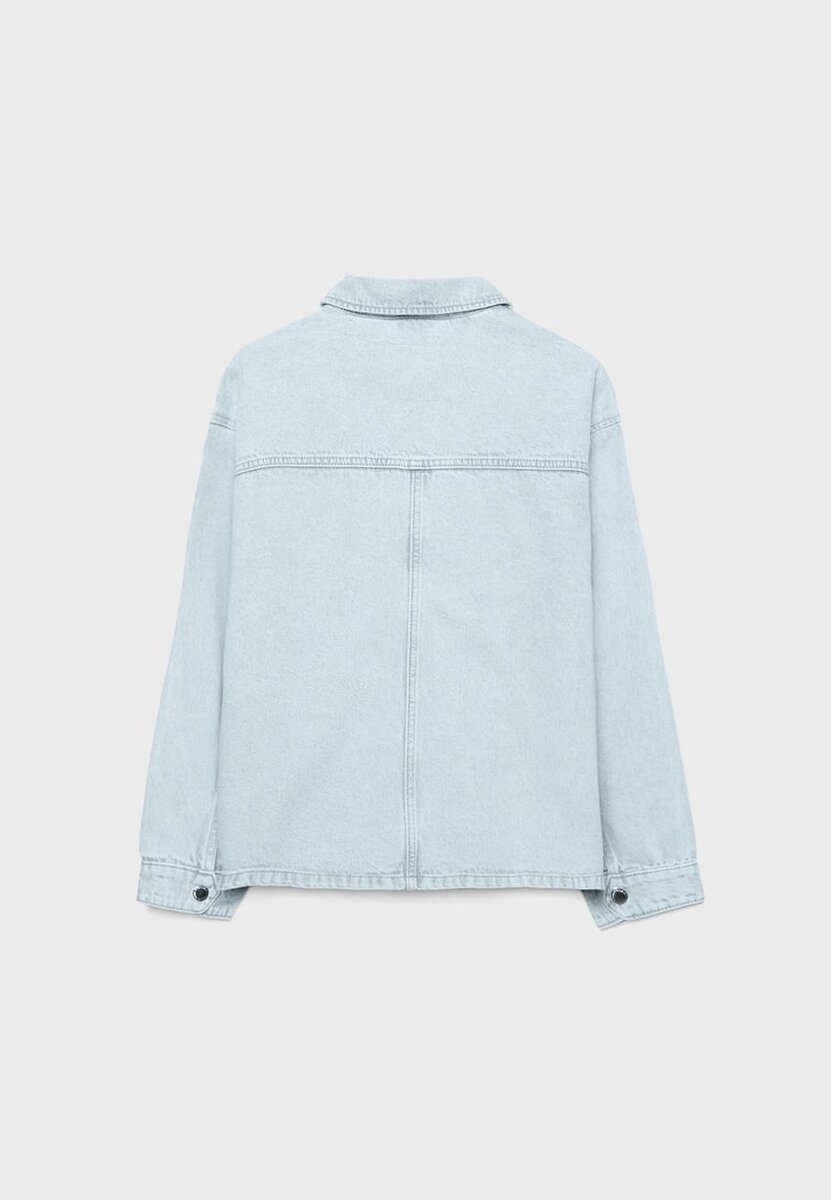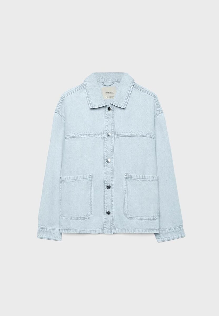 Denimjakke med lommer hos Stradivarius for kun 45,9 $ Tilgjengelig i begrenset tid. Null for kvinner Alltid på moten, kom inn og sjekk nå!