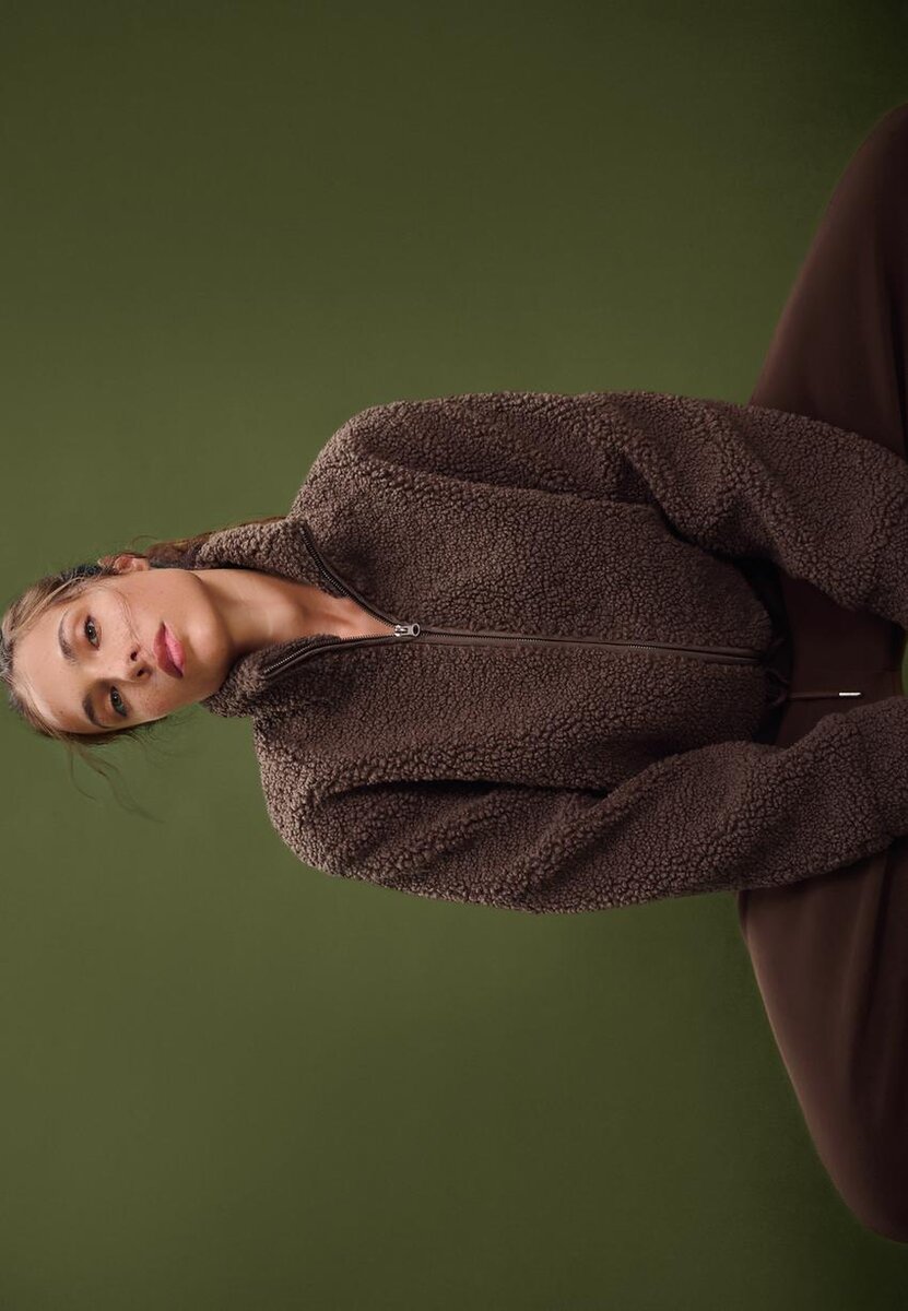 Jakke med glidelås og fôr i imitert saueskinn