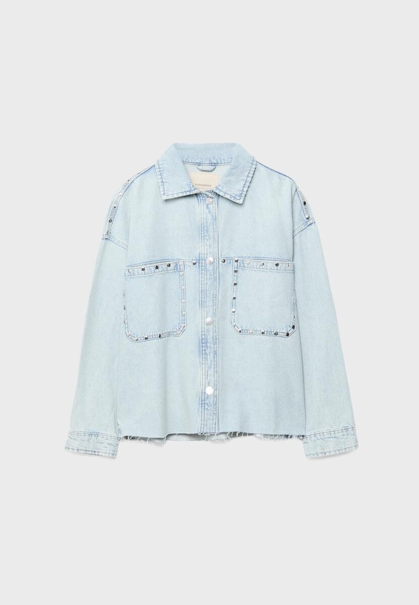 Kort denim-overskjorte med nitter