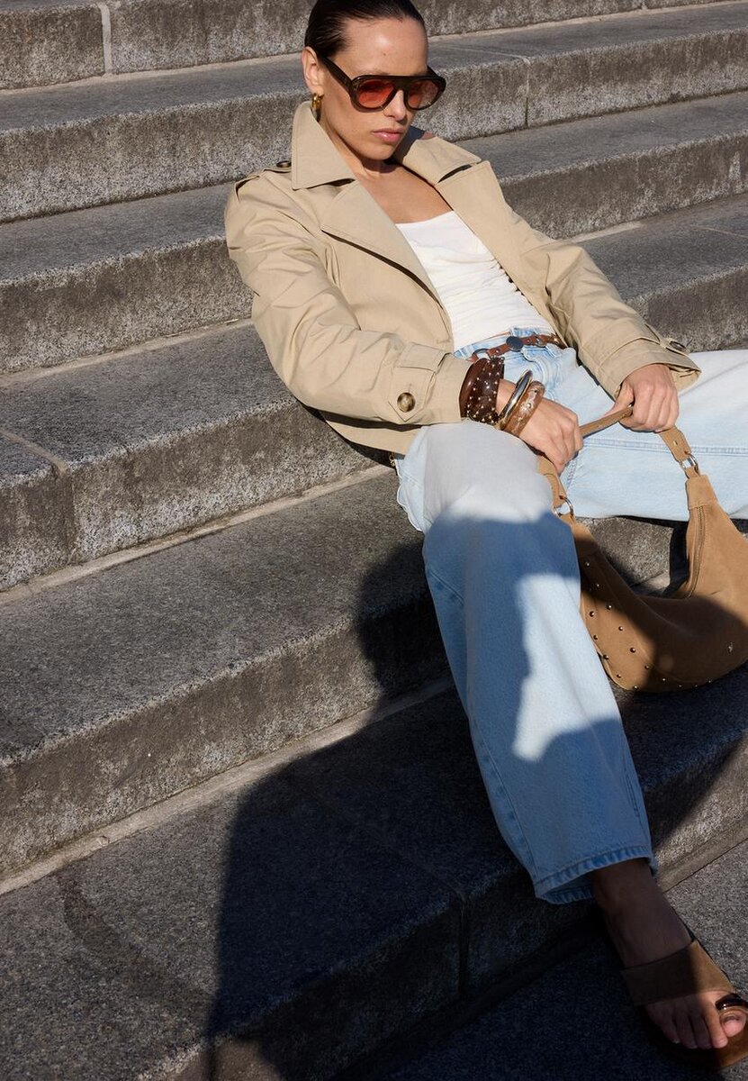 Kort dobbeltradet trenchcoat