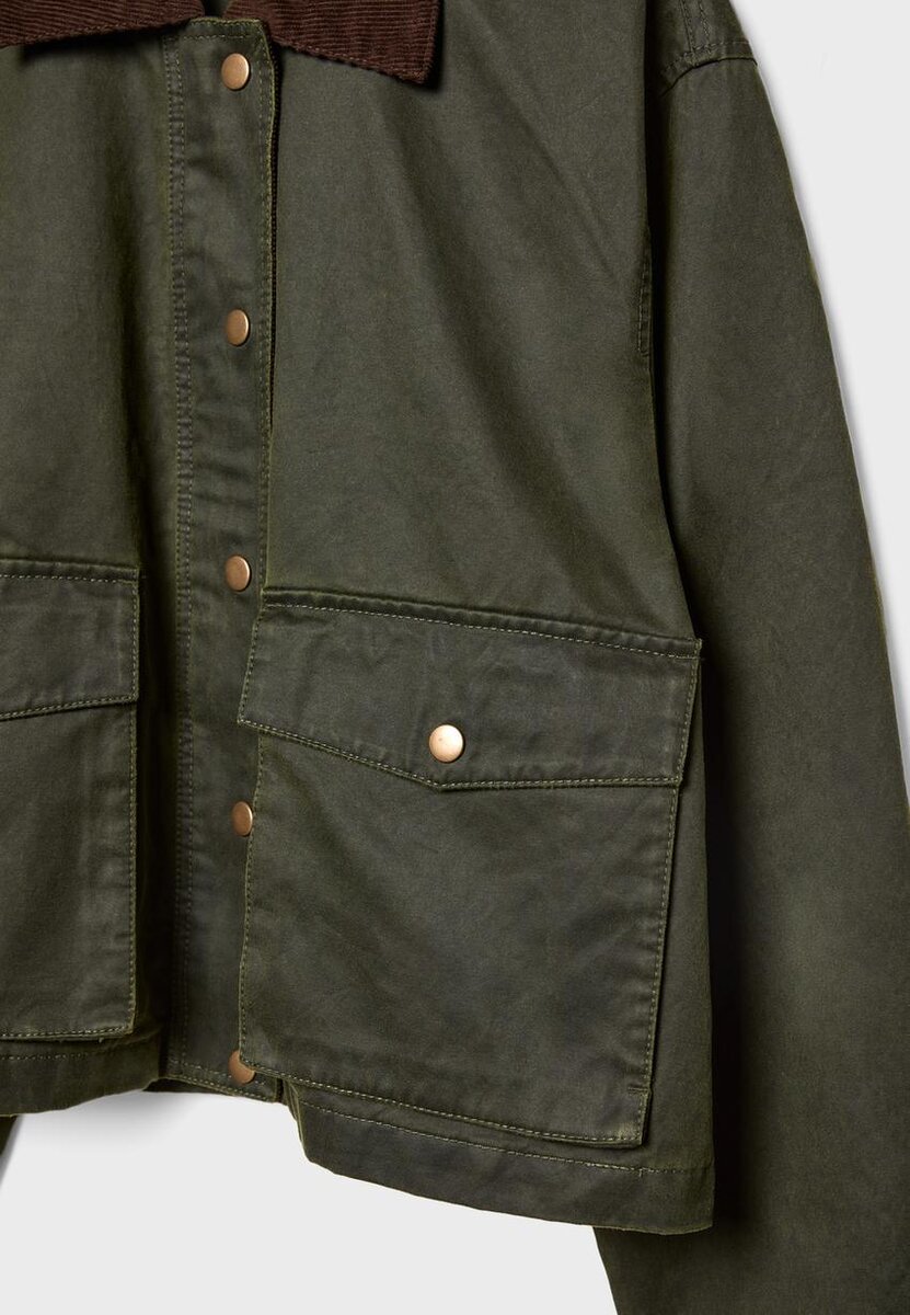 Stradivarius’ korte voksede parkas er det perfekte plagget for deg som ønsker en lett jakke med et urbant og moderne preg. Designet kombinerer ulike materialer, noe som gir plagget tekstur og dynamikk, mens den voksede overflaten gir et sofistikert og moderne utseende. Takket være det lett skreddersydde snittet gir denne jakken en flatterende silhuett uten å gå på bekostning av komforten.