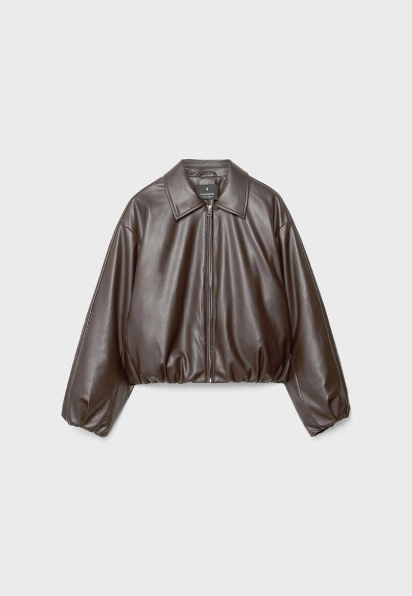 Vattert bomberjakke i skinnlignende stoff