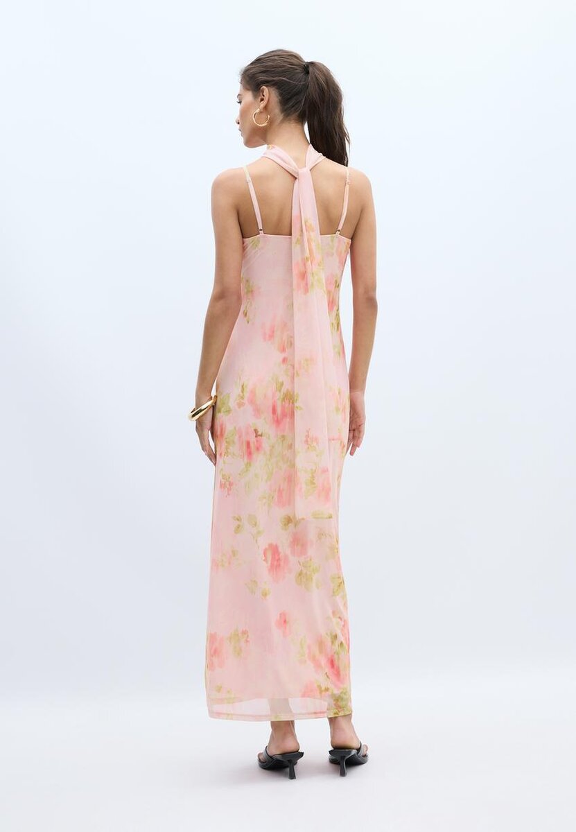 Tettsittende midikjole med rett halsutringning og tynne stropper. Med ton-i-ton-skjerfdetalj. Tilgjengelig i flere farger.