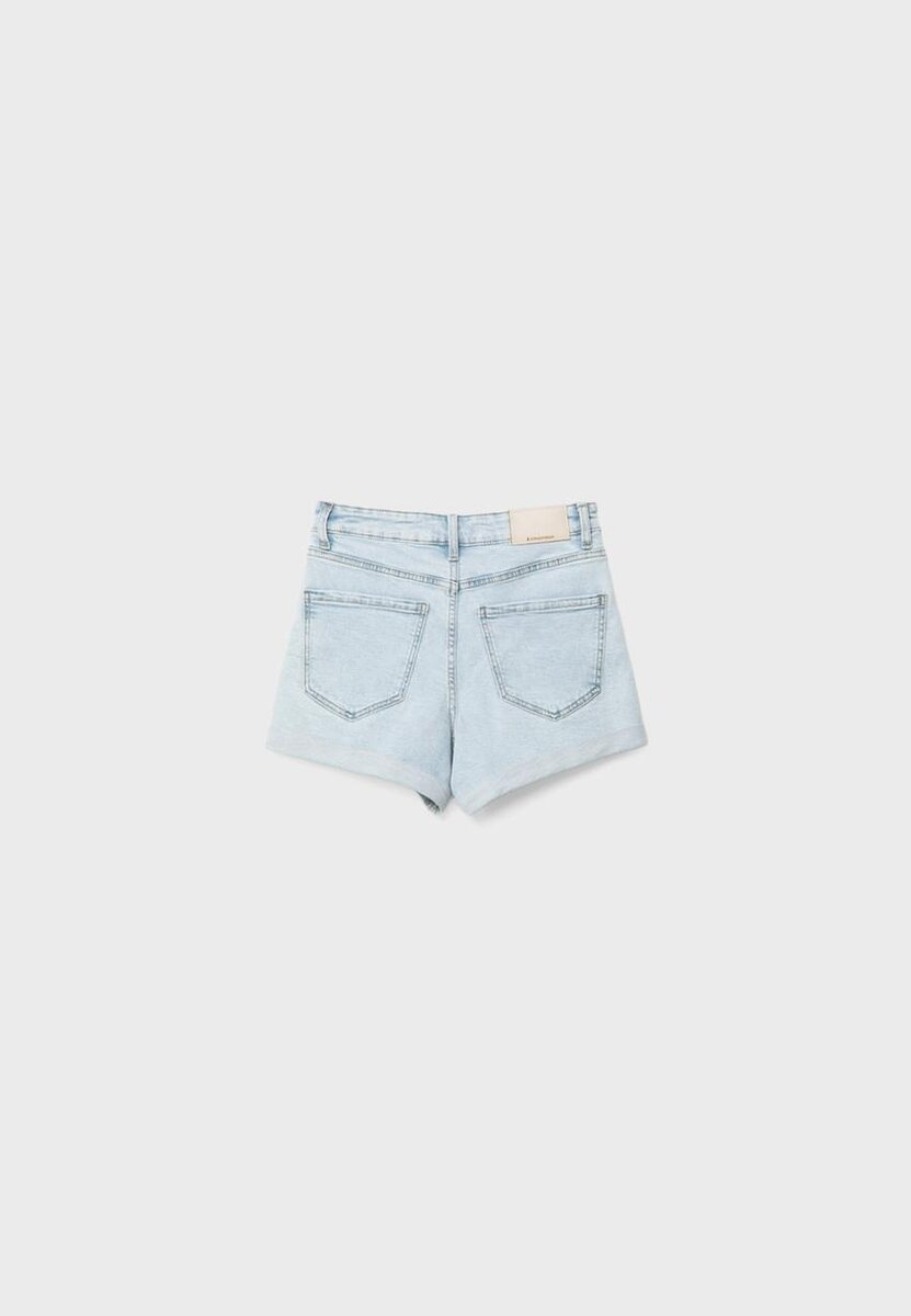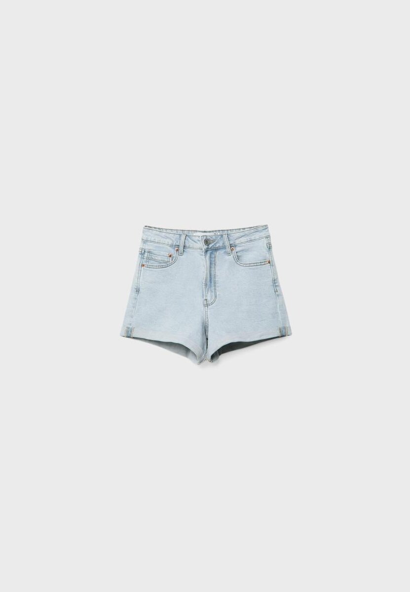 Shorts med høy midje og fem lommer. Oppbrettede kanter. Glidelås og knappelukking øverst. Tilgjengelig i flere farger.