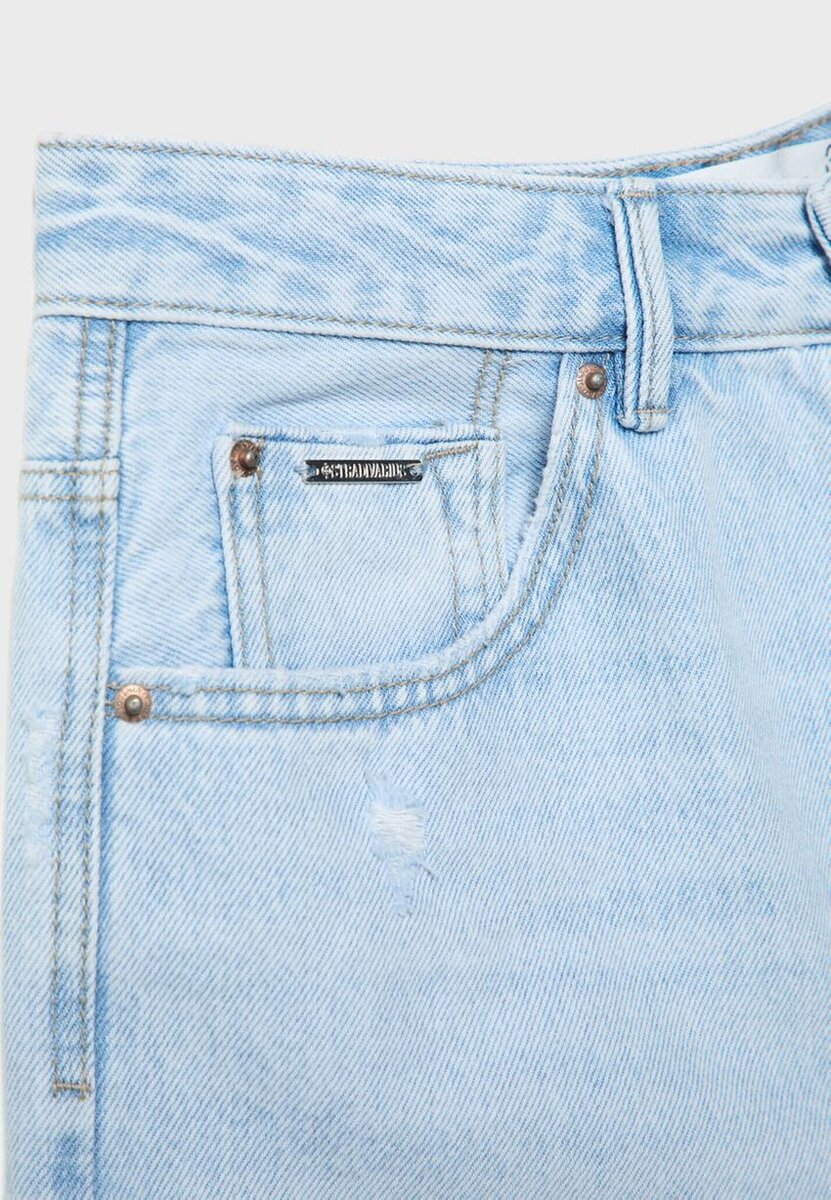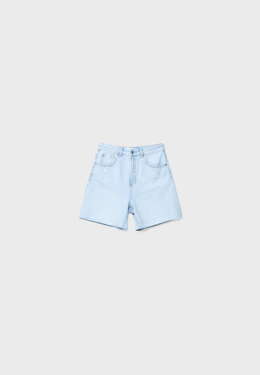 Lange bermuda-shorts med fem lommer, laget av bomull. Høy midje og linning med beltestropper. Lommer foran og påsydde lommer bak. Glidelås foran og metallknapper. Tilgjengelig i flere farger.