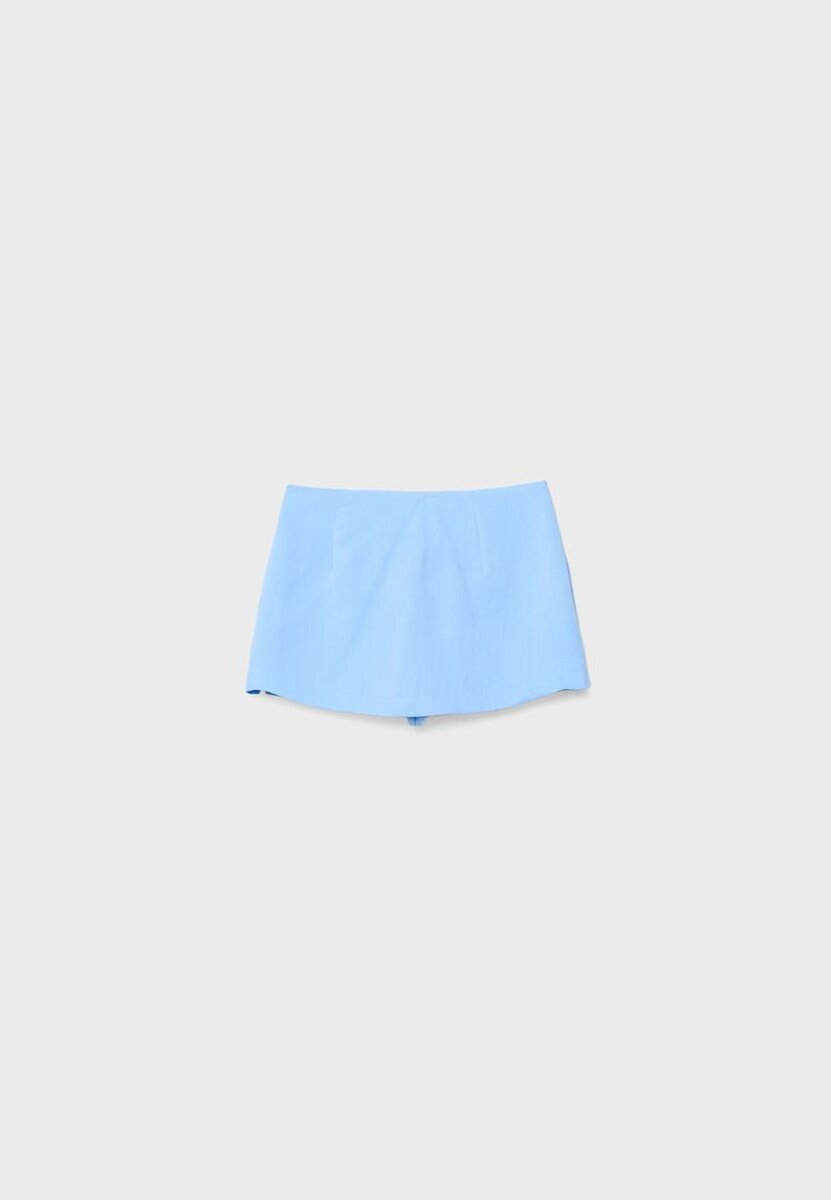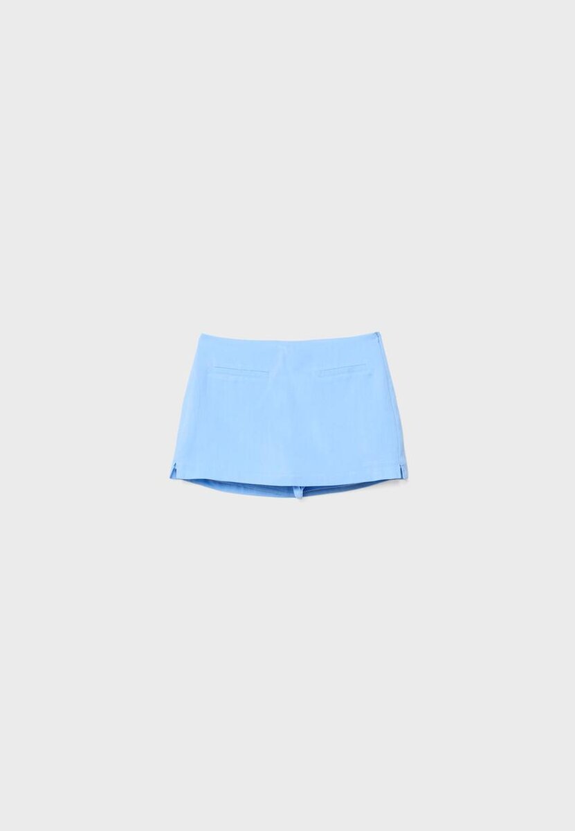 Miniskort med rett snitt, laget av et stoffblanding av Tencel og viskose. Høy midje. Paspolerte lommer bak. Hem med sideslisser. Usynlig glidelås i siden.