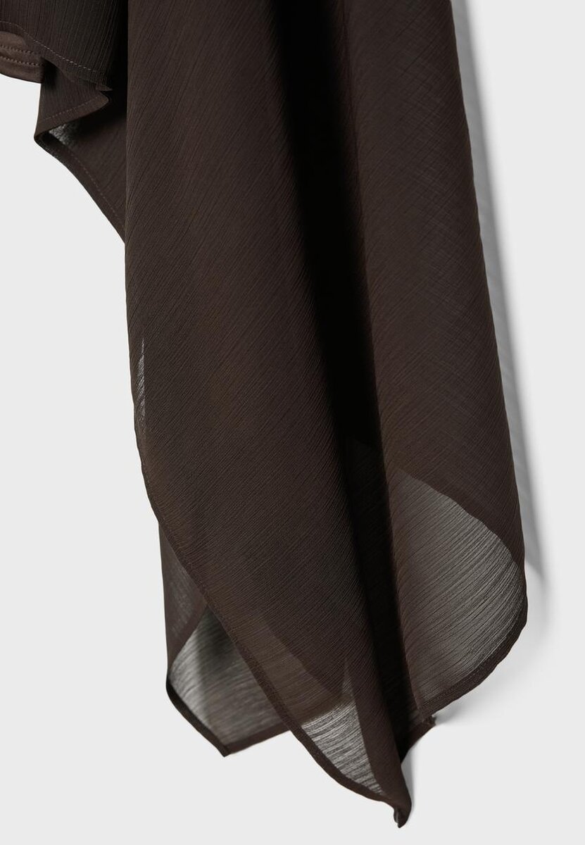 Asymmetrisk kappe med én bred erme og bar skulder. Rynket detalj på siden. Tilgjengelig i flere farger.