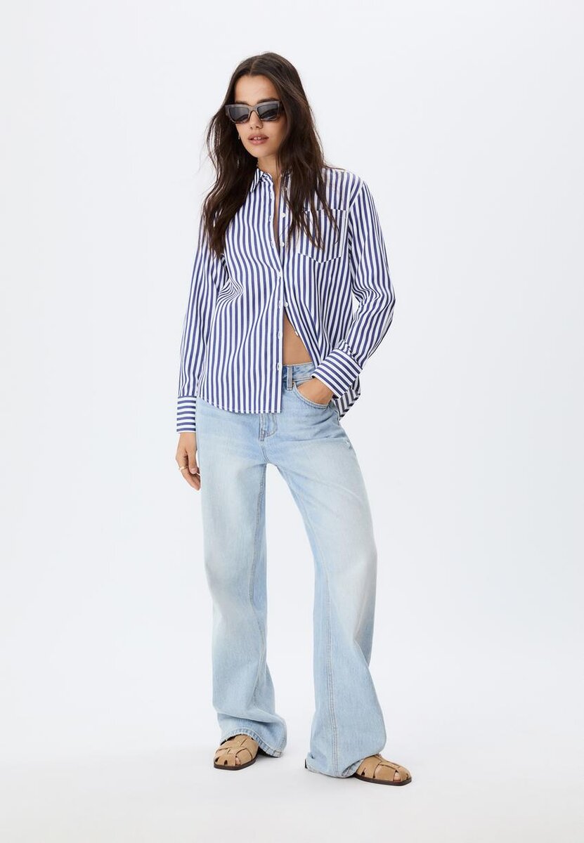Enkel stripet poplin-skjorte med lomme hos Stradivarius for kun 35,9 $ Tilgjengelig i begrenset tid. Skjorter og bluser for kvinner er alltid på moten, kom inn og sjekk ut utvalget nå!