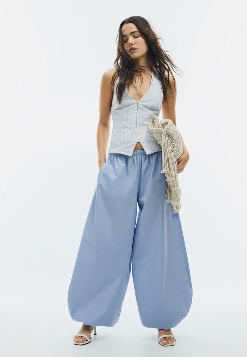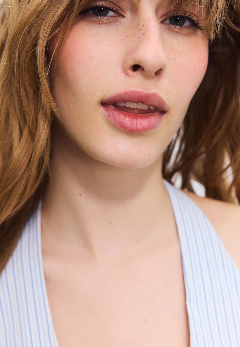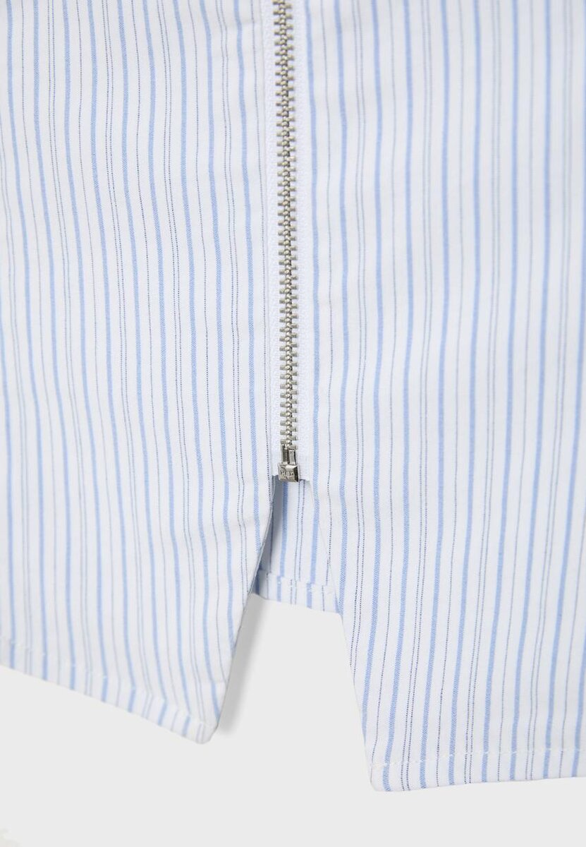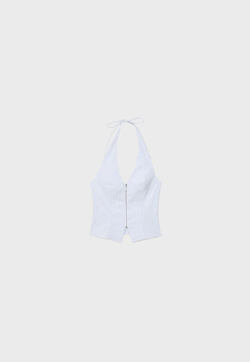 Top med justerbar halterneck med bånd i samme stoff. V-hals. Glidelås foran. Tilgjengelig i flere farger.