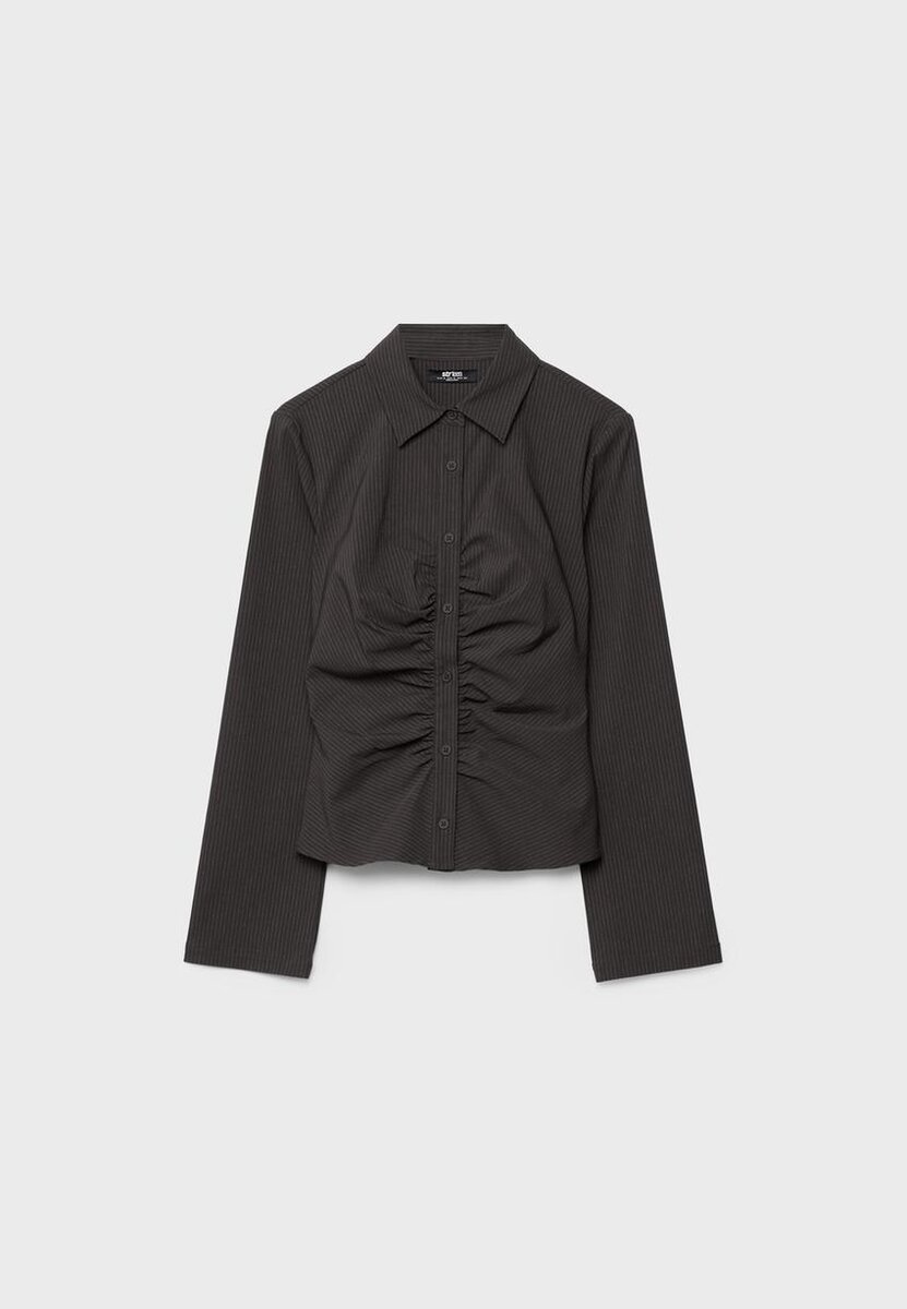 Tettsittende skjorte med reverskrage og lange ermer. Knapper foran og rynket detalj foran. Tilgjengelig i en rekke farger.